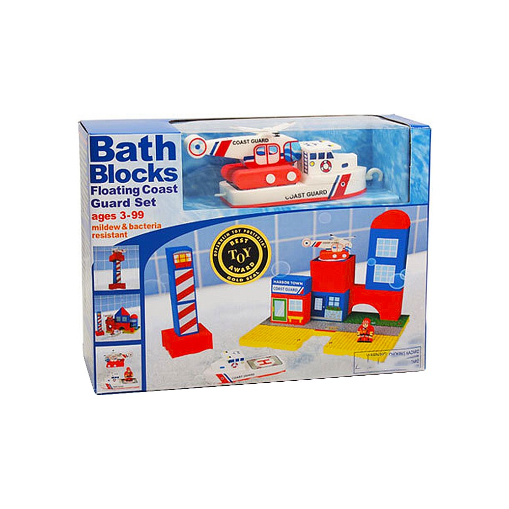 Just Think Toys Bath Blocks Floating Coast Guard Set — прекрасний набір різнобарвних блоків, завдяки якому діти з легкістю знайдуть чим зайнятися у ванній або басейні. Піноподібні м'які блоки працюють як магніти у вологому стані. За допомогою блоків можна побудувати незвичайні траси, по яких вода та м'яч будуть скочуватися, потрапляючи назад у воду.