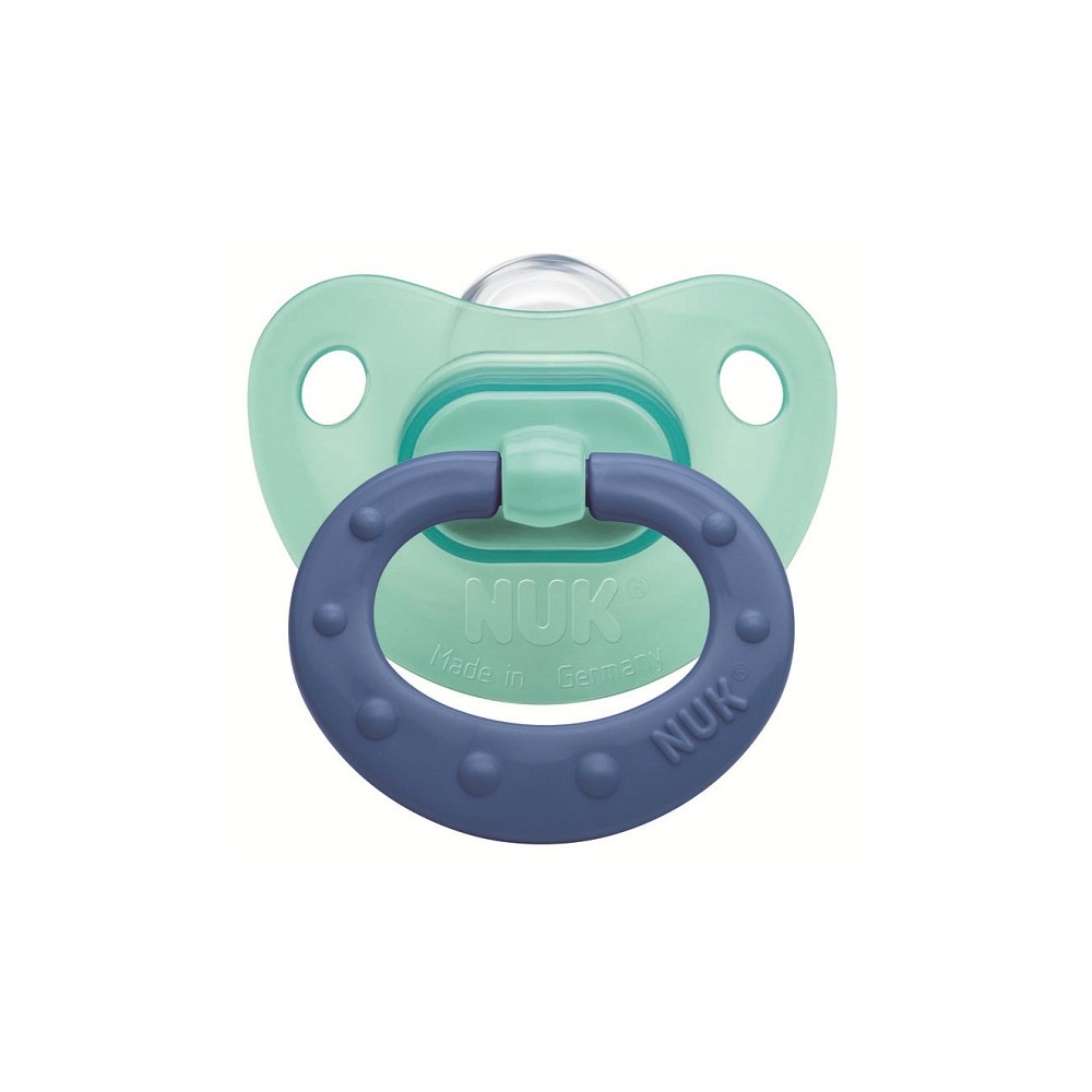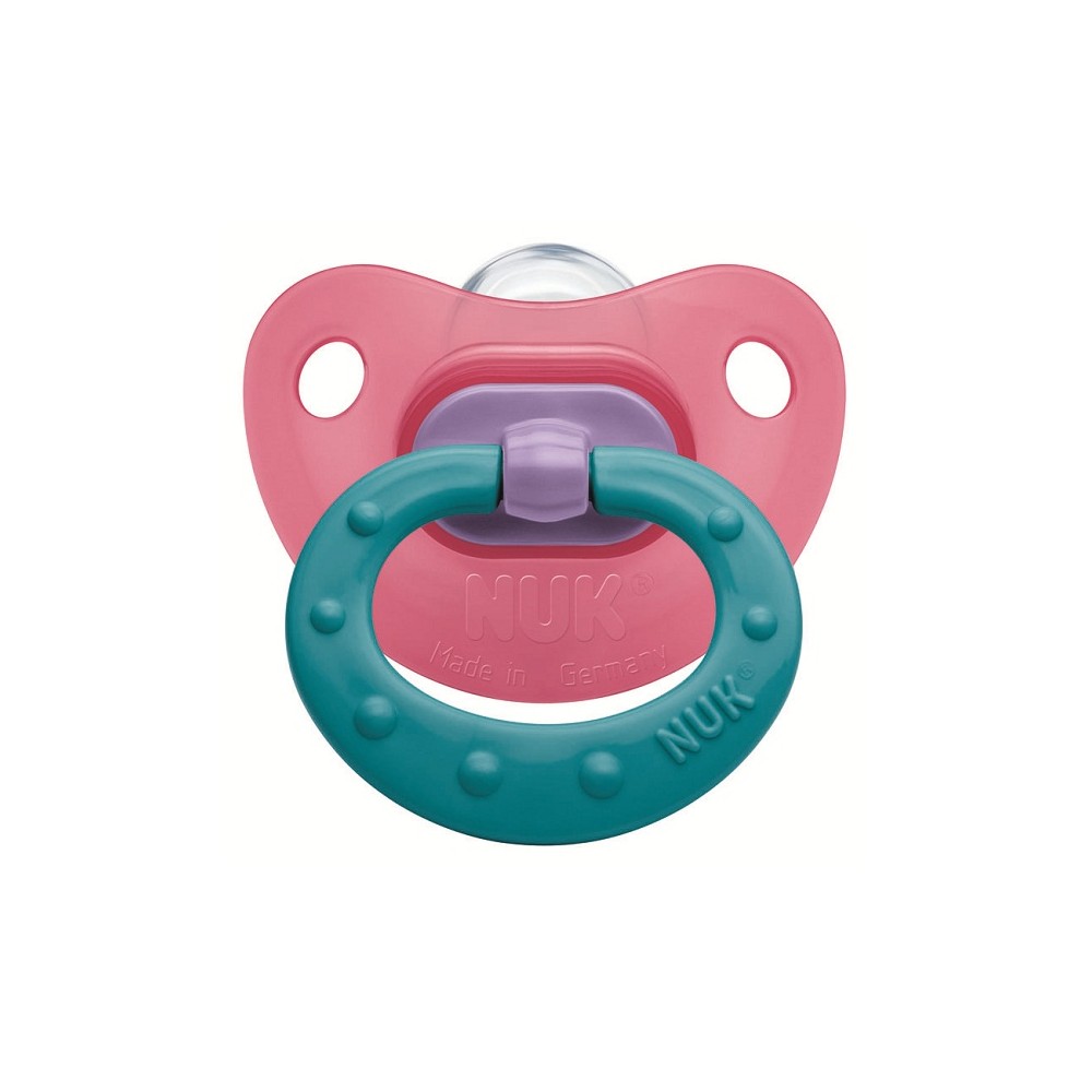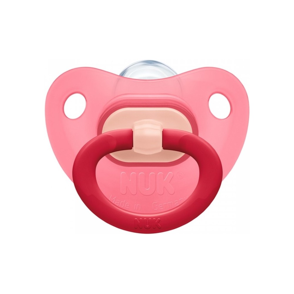 Пустушка ортодонтична силіконова Fashion NUK призначена для дітей від народження. Загубник анатомічної форми виготовлений з високоякісного матеріалу і поставляється різних кольорів і з різними малюнками. Спеціальний клапан випускає повітря з пустушки, вона залишається м'якою і зберігає свою форму, тому сприяє запобіганню неправильного розвитку щелепи. Прозорий силікон легко очищається і витримує високі температури. Він не містить шкідливих субстанцій, може піддаватися кип'ятінню, не має запаху, прозорий і має гладку поверхню, що важливо для сосок-пустушок.