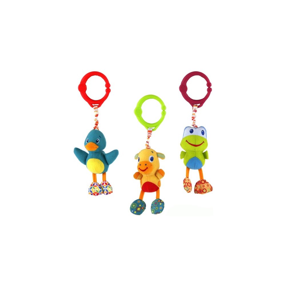 Всі іграшки вібрують, якщо їх потягнути за лапки вниз, і кожен раз повертаються потім у вихідне положення. В допомогою надійного кріплення звірка можна розмістити в зручному для малюка місці - на візку, ліжечку або автокріслі.