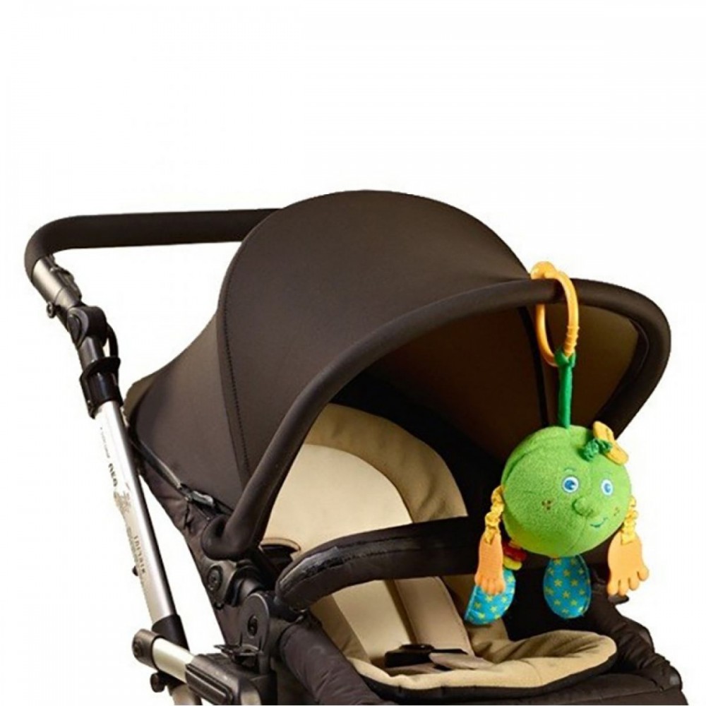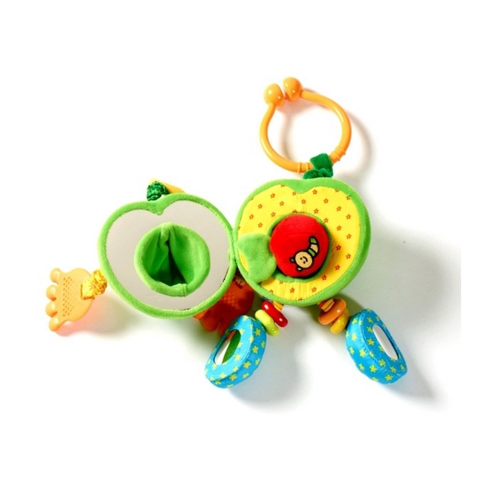 Брязкальце Tiny Love Чарівне зелене Яблуко - яскрава і захоплююча іграшка для дитини від 3 місяців. Пластмасове кільце брязкальця дозволяє легко і швидко прикріпити її до дуг розвиваючого килимка або до дуги, установленої на ліжечку маляти, на автокрісло або прогулянкову коляску. Дитина розглядає яскраве яблуко, що висить над ним, торкає його, і отримує перше уявлення про колір, форму, матеріал. Одна половинка яблука - дзеркальна, а усередині іншої половинки сидить маленький черв'ячок. Варто тільки потягнути його за голову і маленький черв'ячок перетвориться в довгого черв'яка, а потім, на превелику радість малюка, раптом завібрує, і знову стане маленьким.