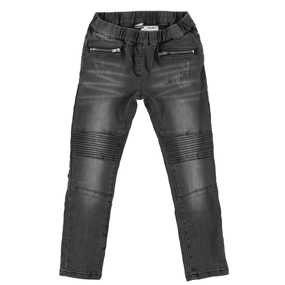 Джинси з еластичної джинсової тканини з відстрочками, кишенями на блискавці, звужені донизу. Ефект розриву та кам'яного прання надає їм відчуття зносу. Джинси з м'якою еластичною талією на резинці. Незамінний атрибут у гардеробі Вашої модниці.