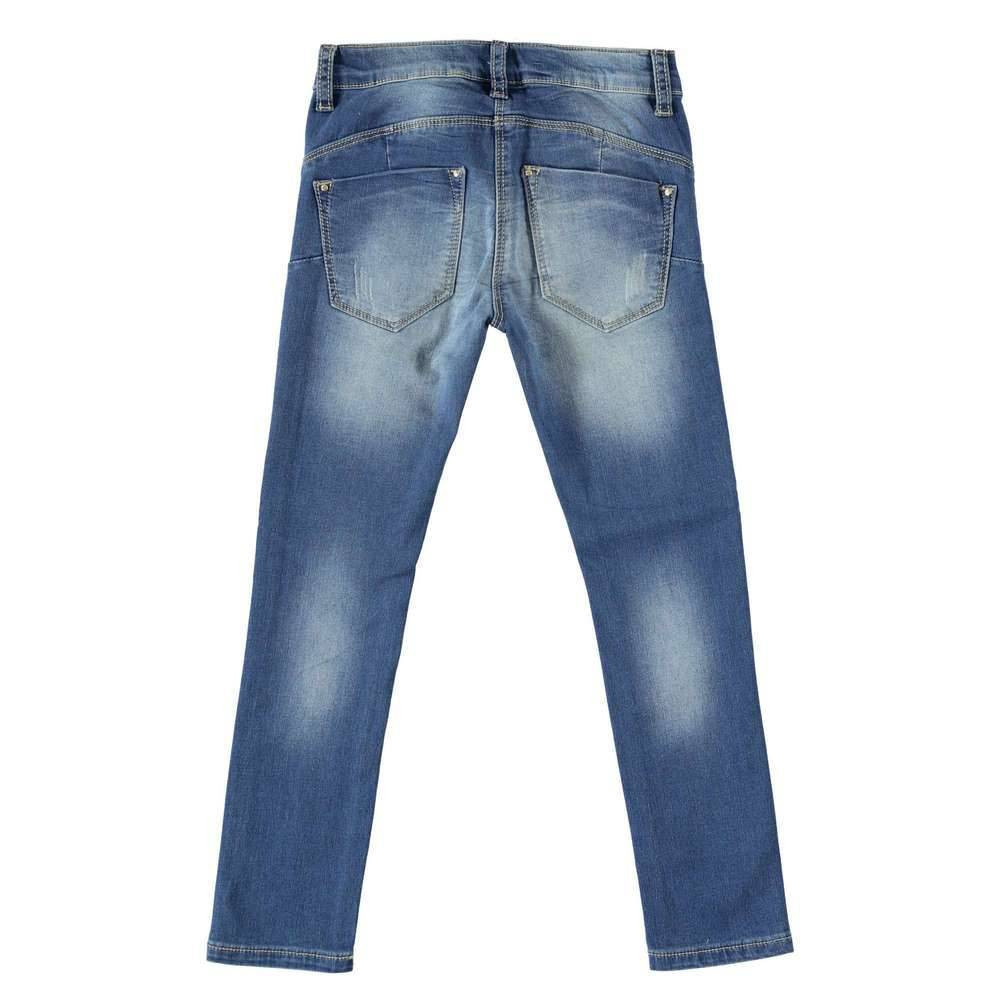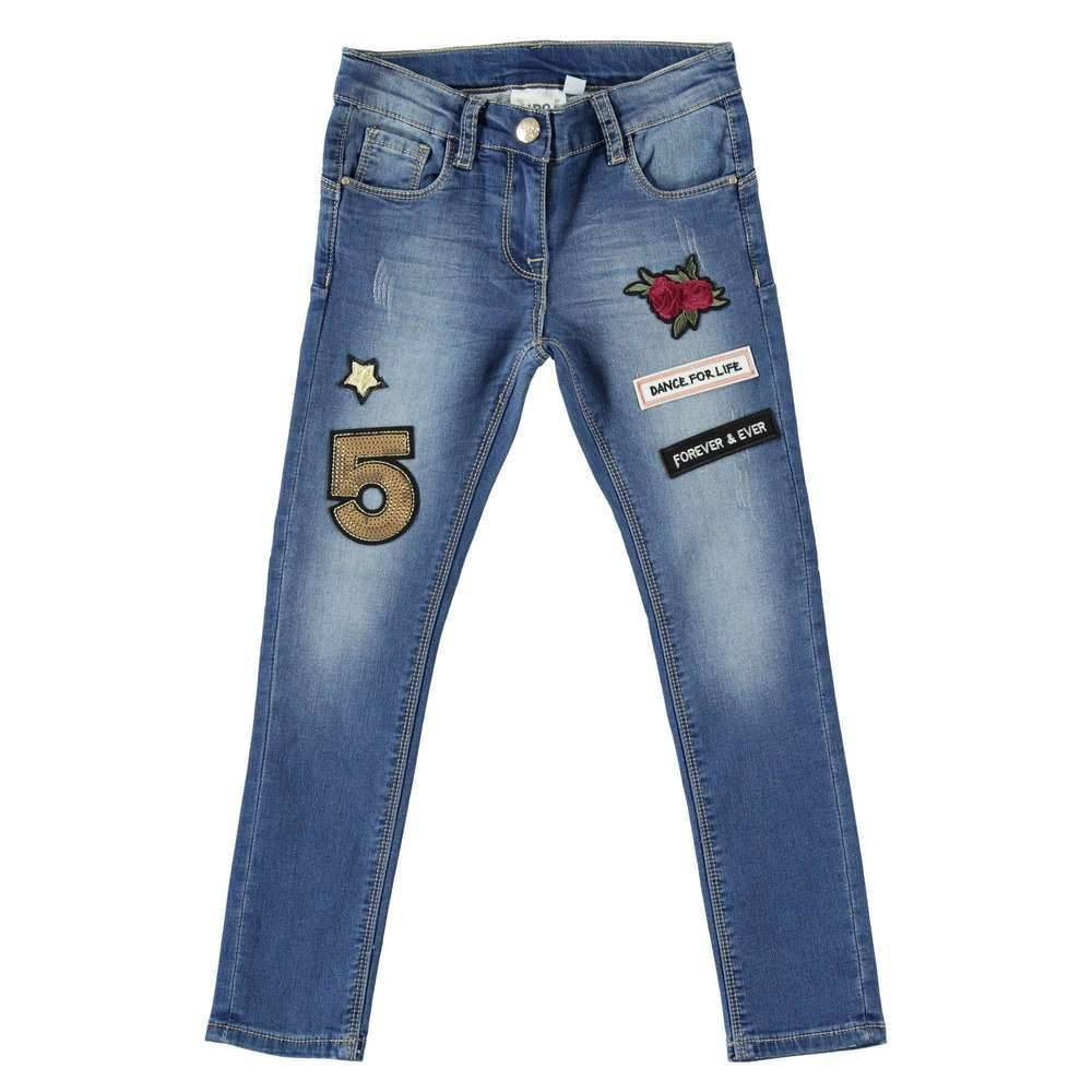 Для дивовижної теплої осені iDO пропонує яскраві, зручні та практичні джинси, в яких дівчатка завжди виглядатимуть гламурно! Ці джинси з високою талією виконані з кам'яної випраної стрейч-джинсової тканини та декоровані аплікацією. Джинси звужені знизу, талія легко регулюється еластичною стрічкою з петлею та внутрішніми гудзиками. Застібаються на блискавку та металевий гудзик кнопку.
