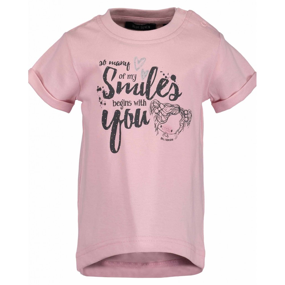 Футболка для дівчинки. Оригінальна трикотажна футболка для дівчинки спереду прикрашена принтом, рукава з вилогами, низ злегка заокруглений, спинка довше переду. На плечі застібка на кнопках для зручності швидкого одягання. У кожного кольору свій малюнок спереду. Розмір виробу визначається зростанням Вашої дитини. Колір рожевий. Склад: 100% бавовна.