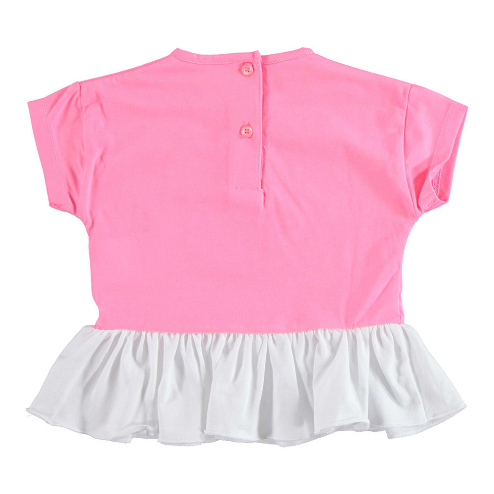 Трикотажна футболка виготовлена зі 100% бавовни. Окрасою служать аплікаційні серця і пишна оборка знизу. Застібається ззаду на гудзики.