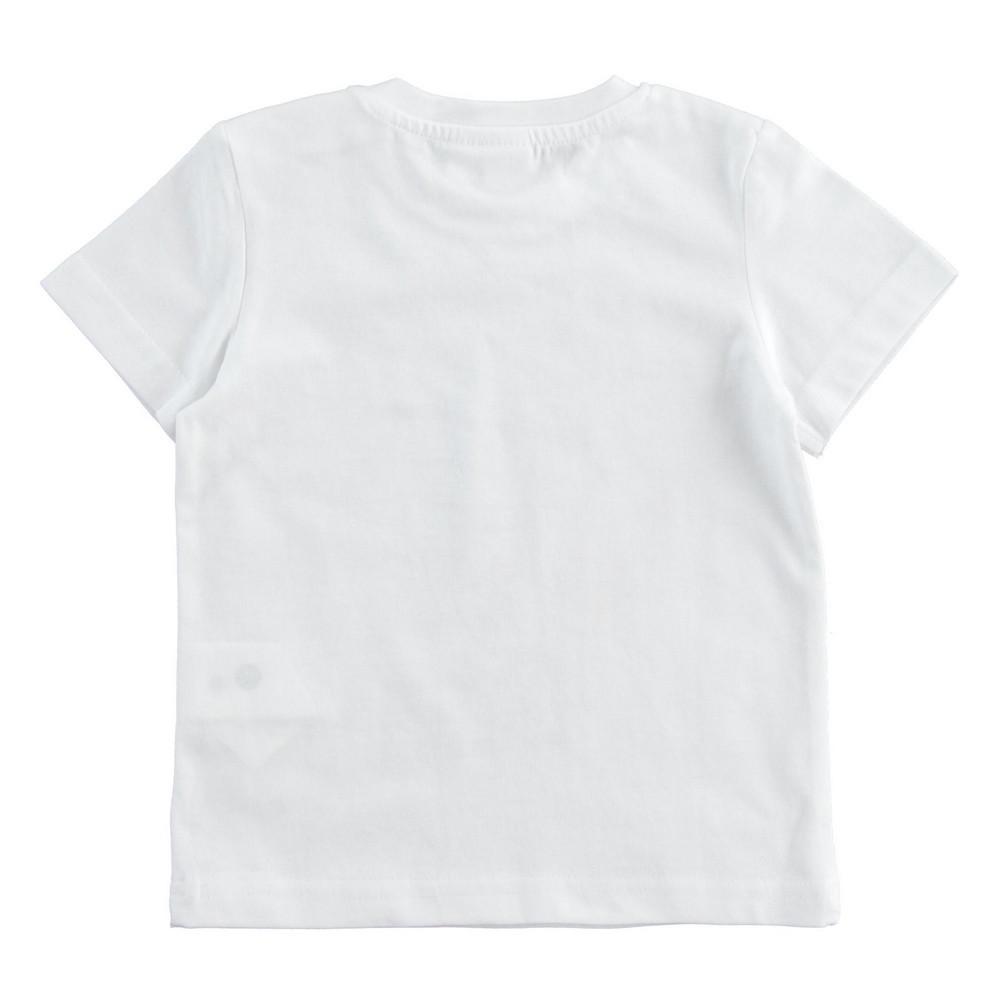 Стильна і модна футболка iDO виготовлена з 100% бавовни. Оздоблення горловини - еластична трикотажна гумка. Футболка прикрашена спереду кольоровим принтом. Кнопки на плечі для розмірів до 3 років, що значно спрощує одягання дитини.