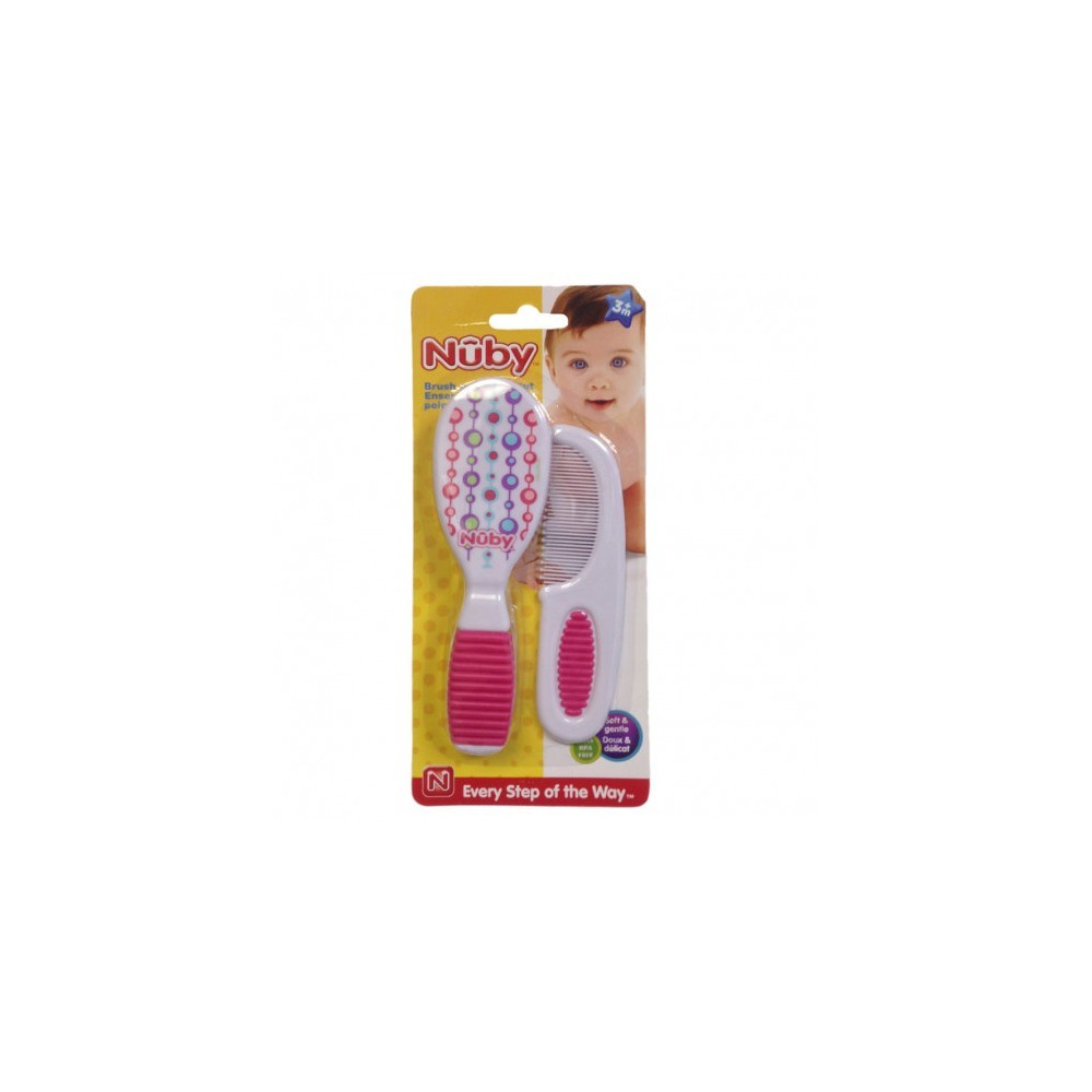 Гігієнічні показники нейлонової щітки набагато вищі, ніж у щіток із натуральною щетиною. Гребінець і щітка створені спеціально для зручного розчісування волосся дитини. М'яка нейлонова щетина не подразнить ніжну шкіру малюка.