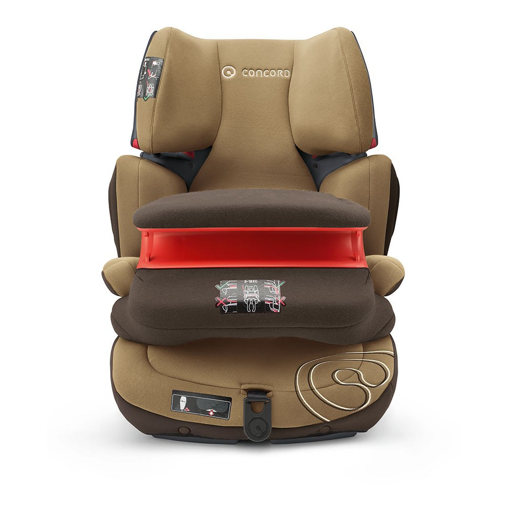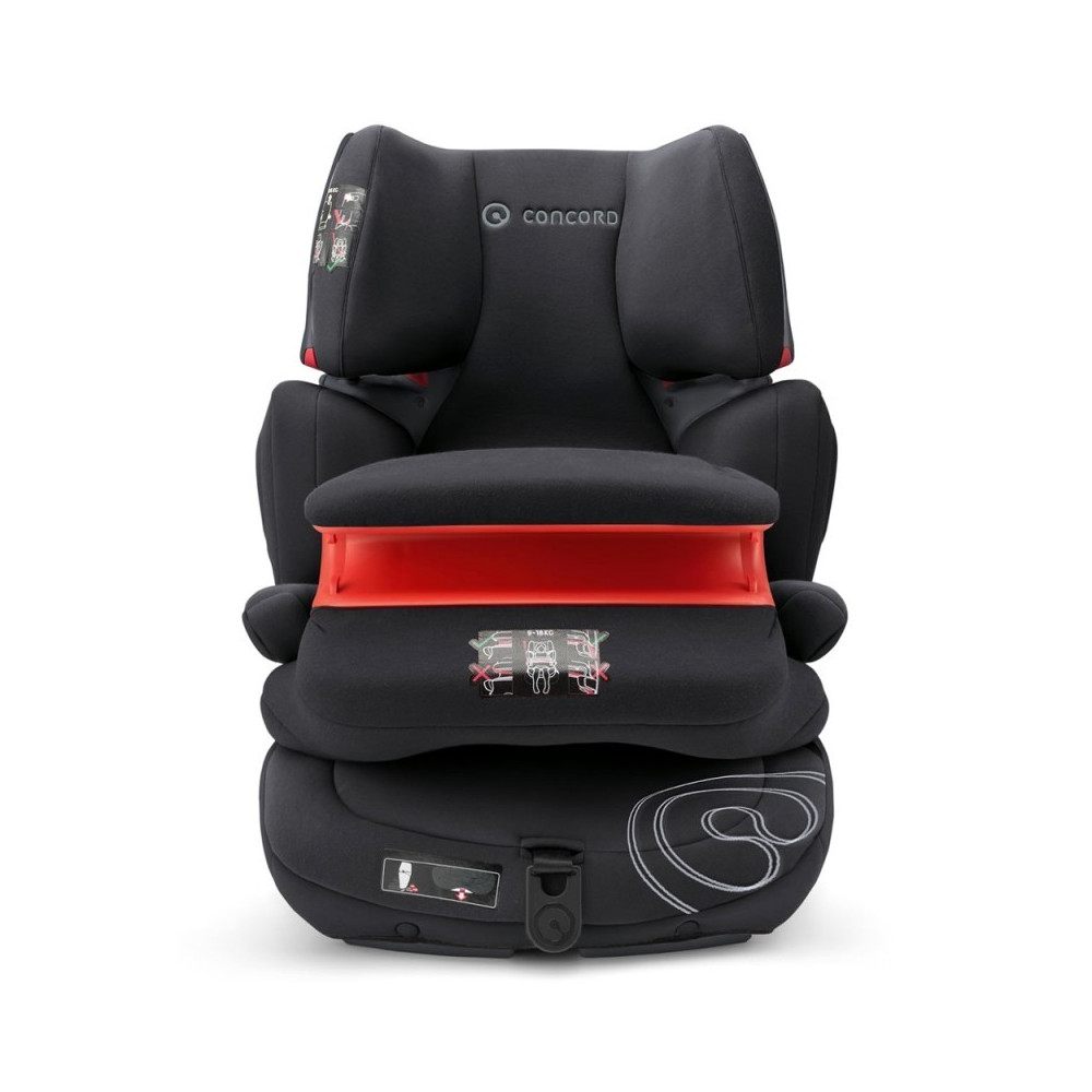 Універсальне автокрісло групи 1-2-3 для дітей від 9 місяців до 12 років, вагою від 9 до 36 кг. Автокрісло є молодшою моделлю Concord Transformer XT PRO з дещо спрощеною системою пневморегуліровок і м'яким кріпленням latch на відміну від жорсткого IsoFix. Налаштовується за допомогою унікального пневматичного елемента Variosize System: всього однією кнопкою одночасно регулюється висота підголівника, бічний захист і внутрішній обсяг автокрісла по ширині. Глибокі розвинені боковини надійно захищають від бокового удару. Ергономічний дизайн спинки сидіння і підголівника досягається за допомогою спіненого наповнювача, що адаптується за формою тіла дитини. Тришаровий енергопоглинаючий матеріал Triple Layer Protection забезпечує найвищу захист. Модель відрізняється застосуванням утримує столика замість ременів (для групи 1) та порівняно невеликою вагою для даного універсального призначення. У матеріалі оббивки використовуються натуральні тканини. Додатковий регулятор довжини ременів кріплення дозволить без зусиль підібрати оптимальне положення в будь-якому автомобілі. Автокрісло Concord Transformer PRO кріпиться за допомогою м'якої системи IsoFix - latch. Дитина від 9 місяців до 3-х років фіксується штатним ременем автомобіля через спеціальний столик. Завдяки цьому навантаження на шийний відділ хребта при фронтальному ударі значно знижується. Після досягнення трирічного віку необхідності в захисному столику немає - дитина фіксується штатним ременем через спеціальні напрямні в підголівнику. Обидві гілки ременя повинні сходитися під підлокітником з боку замку.