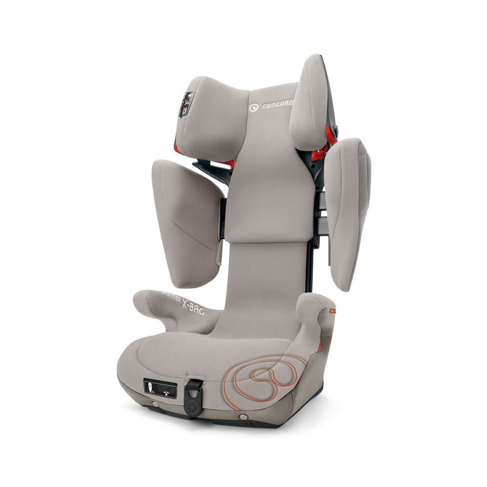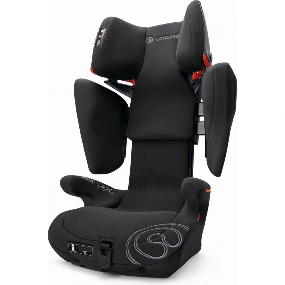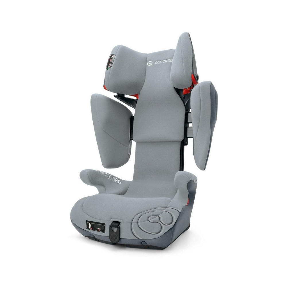 Concord Transformer X-bag - сучасна, вдосконалена модель автокрісел лінії Transformer, виконана з інноваційної концепції безпеки. Потужний ударостійкий каркас і розвинені масивні боковини, в сукупності з додатковим шаром ізоляції, забезпечують чудовий захист при ударі. Каркас сидіння при цьому дуже легкий і компактний. Ортопедичні властивості спинки і підстави, а також великий внутрішній об'єм, забезпечують комфорт в далеких поїздках. Регулювання висоти підголівника, поєднана з регулюванням ширини боковин, виконується одним рухом. Загальна кількість регулювань досягає 20 позицій, таким чином дозволяючи автокрісла «рости» разом з дитиною. Спеціальна кнопка управління Variosize коригує тонкі настройки автокрісла одним натисканням. Розвинені підлокітники, наповнювач крісла з ефектом пам'яті і м'який зовнішній чохол створюють особливий комфорт для дитини. Направляючі ременя в підголівнику мають засувку, яка запобігає його мимовільне випадання. Для поліпшення стійкості і більш міцного кріплення в кріслі Concord Transformer X-Bag використовуються додаткові фіксатори Latch до дужках Isofix в сидінні автомобіля.