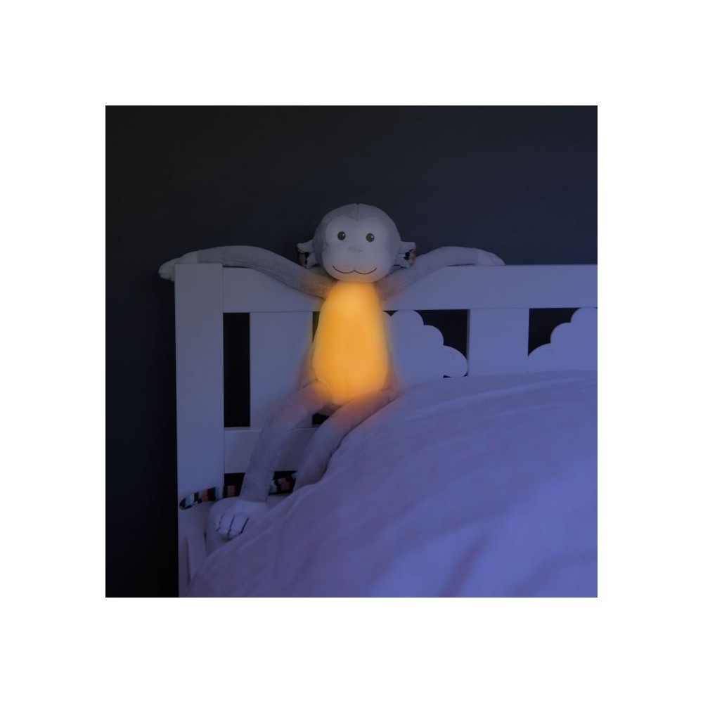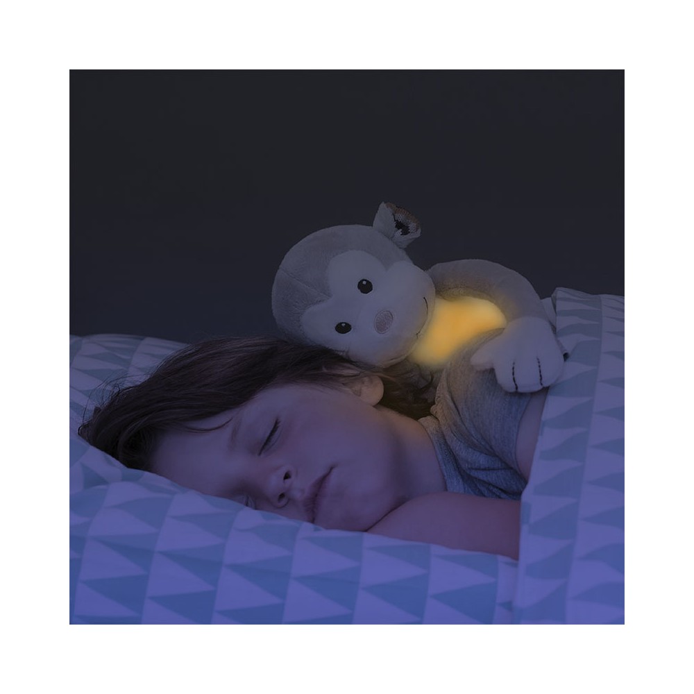 Животик світиться м'яким, сяючим світлом. Щоб включити музику або нічник, просто натисніть на животик або струсіть її. Виберіть одну їх 3-х мелодій: колискова, заспокійлива або мелодія звуки природи. Два рівня гучності. Звук і світло автоматично вимикаються через 20 хвилин.