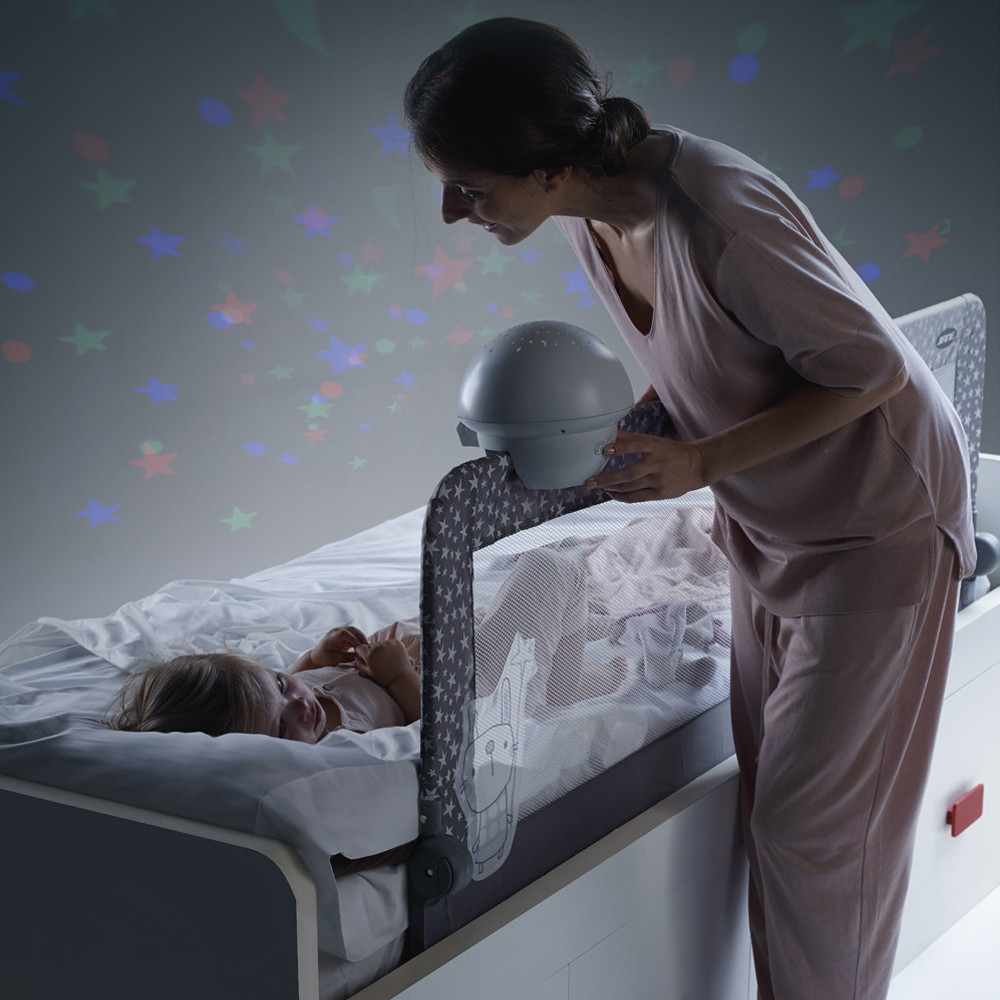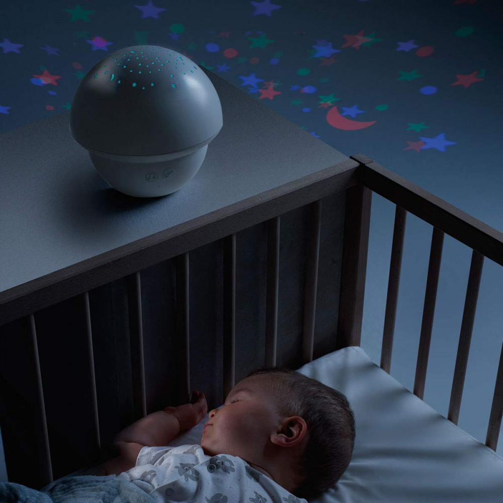 Проектор з розслаблюючій музикою і зоряними проекціями, допоможе вашій дитині міцно спати.