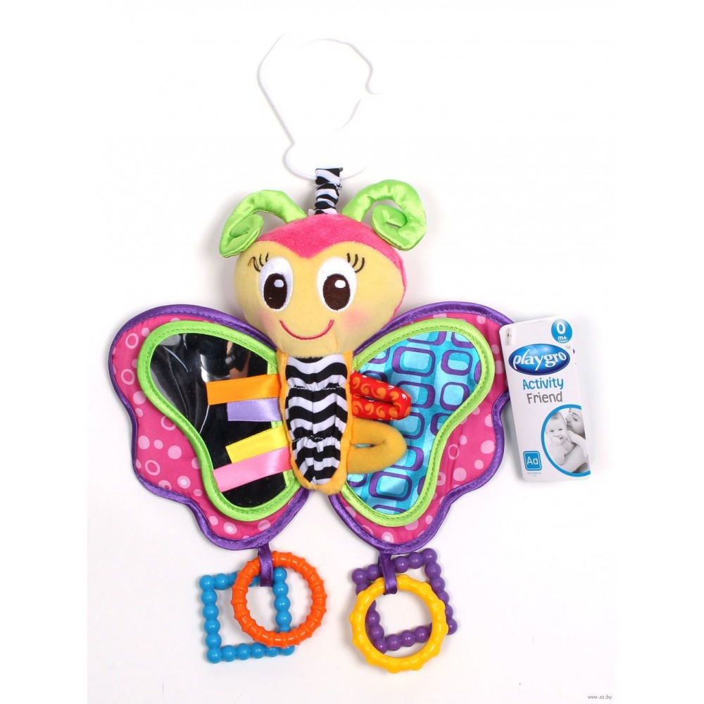 На крильцях метелика є прорізувачі, про які малюк зможе почухати зубки. Весела мордочка комахи, крила з різними візерунками і безпечним дзеркальцем не залишать дитину байдужою. Малюк з великим задоволенням буде гратися з метеликом. Різні текстури та кольору розвивають зорове і тактильне сприйняття.