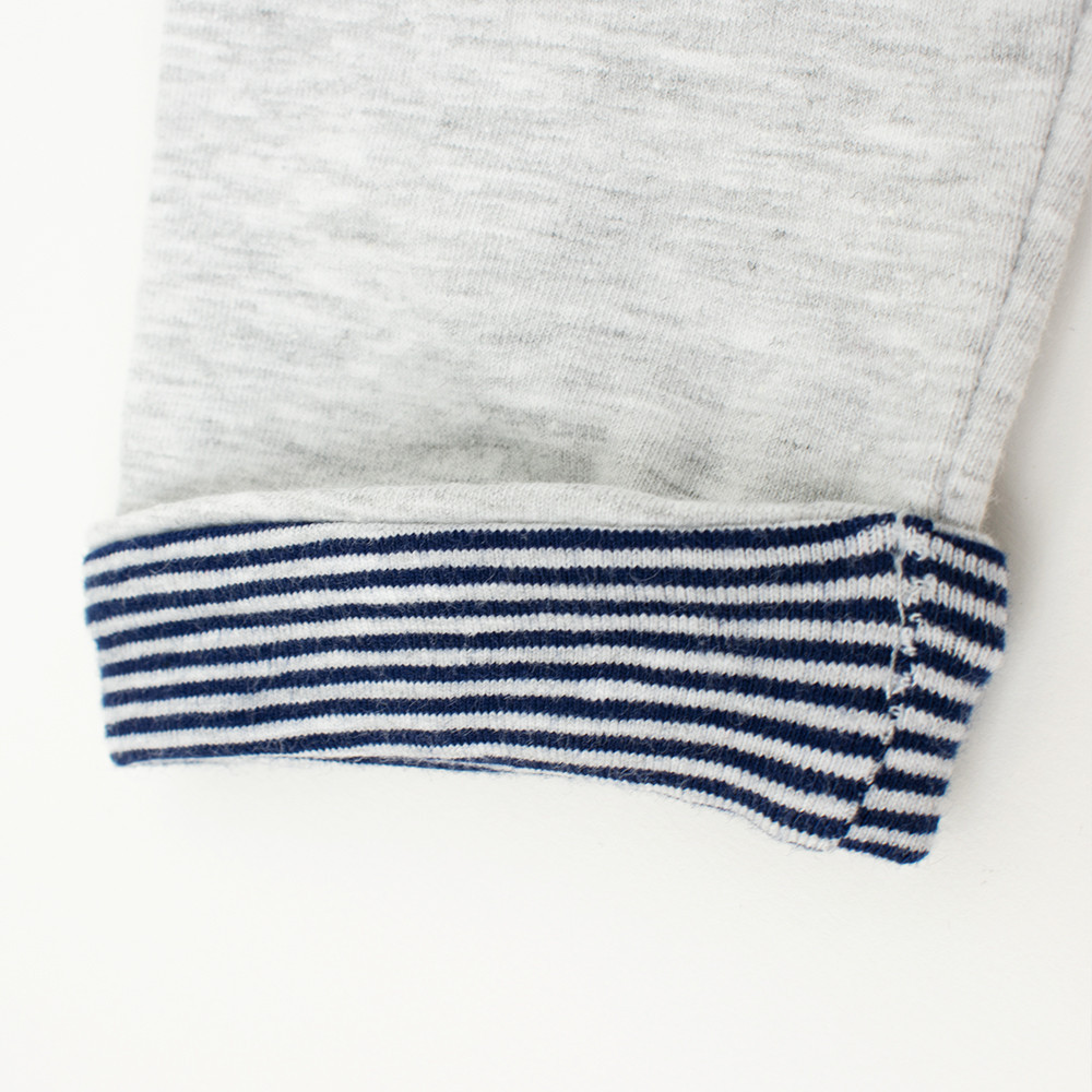Набір для новонародженого Babybol хлопчика складається з 3 предметів. Трикотажна толстовка, що застібається спереду на кнопки і прикрашена накладними кишеньками, малюнком. М'яка трикотажна футболка застібається на спинці і малюнок підтримує морську тему толстовки. Всередині трикотажного пояса штанів вшита резинка. На рукавах толстовки смугасті відвороти, а на манжетах штанців однотонні, що робить цей комплект ще більш привабливим для малюка.