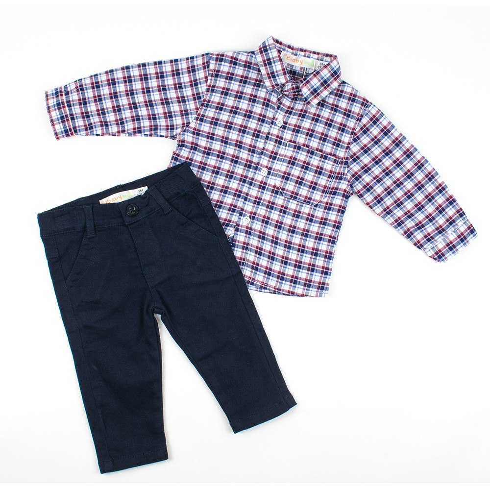 Стильний комплект Babybol, що складається з картатої сорочки та штанів, неодмінно сподобається Вашій дитині. Яскрава картата сорочка модна та стильна. Застібається на гудзики, низ трохи округлений. Прикрашають сорочку відстрочена накладна кишеня, комір, пройма та манжети на рукавах. Брюки завжди потрібні у гардеробі Вашої дитини. Модні та стильні, об'єм талії в брюках регулюється вшитою в поясі гумкою, яка затягується, та застібається на внутрішні гудзики. У цьому ансамблі Ваша дитина завжди виглядатиме модно та стильно.