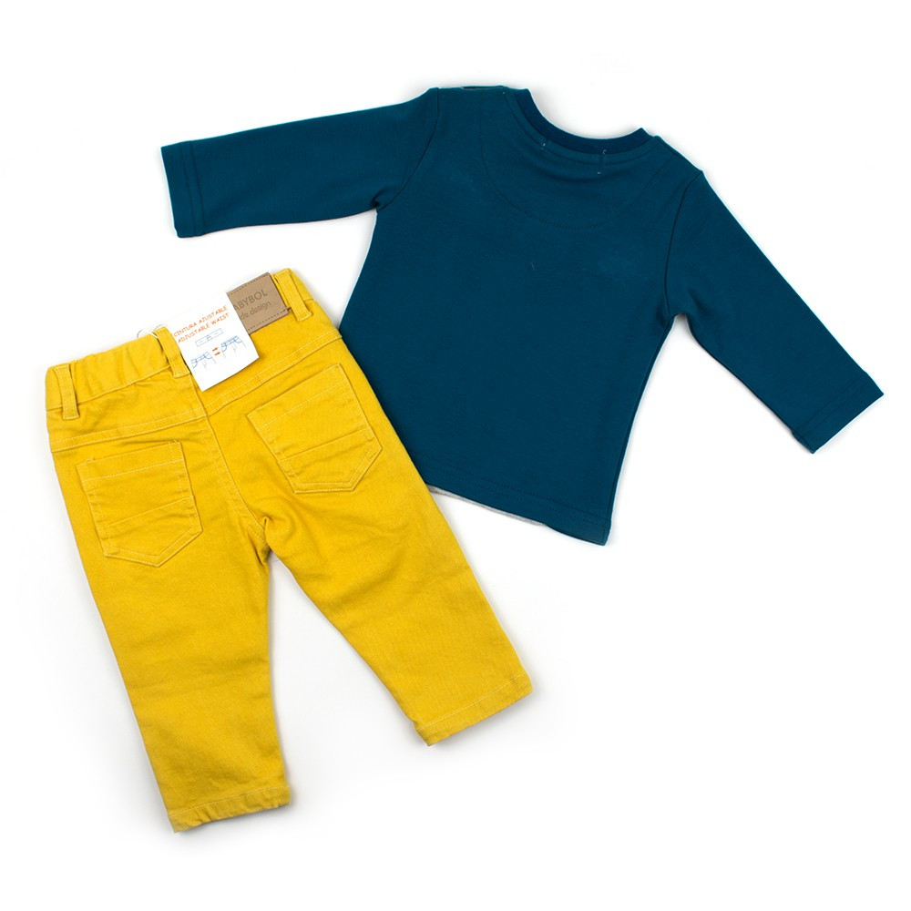 Стильний комплект Babybol що складається з реглана і брюк неодмінно сподобається Вашій дитині. Яскравий синій реглан з аплікацією, застібається на плечі на кнопки тільки у розмірів 12м, 18м, 24м, що значно спрощує процес одягання малюка. Брюки завжди потрібні у гардеробі Вашої дитини. Об'єм талії регулюється вшитою в поясі гумкою, яка затягується, і застібається на внутрішні гудзики. У цьому ансамблі Ваша дитина завжди виглядатиме модно та стильно.