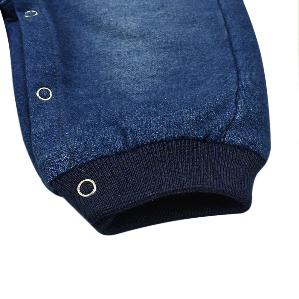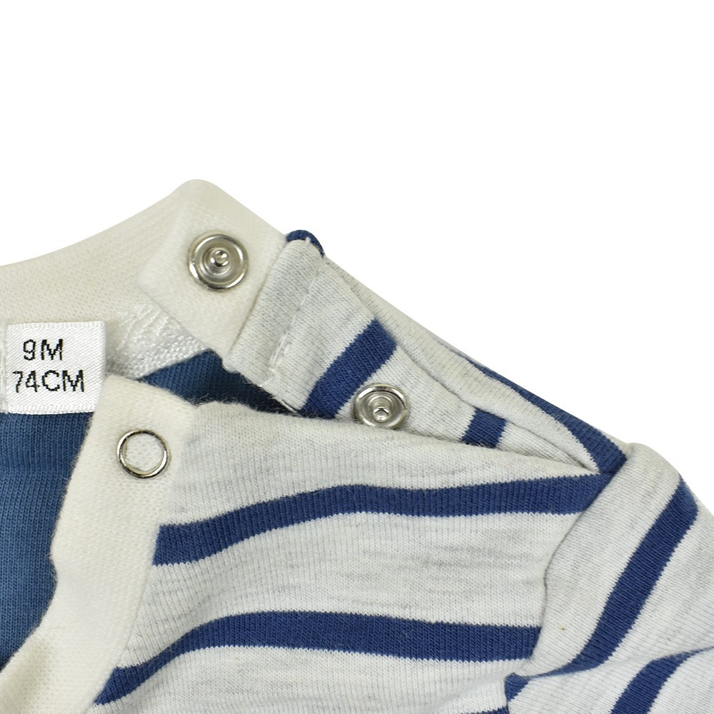Прекрасний стильний комплект, що складається з джинсового комбінезону і реглану необхідний Вашому хлопчику для щоденних прогулянок. Джинси на лямках з кількома кнопками, що дозволяє регулювати ріст, на кісточці трикотажний манжет. Кнопки є з боків та між ніжок, що полегшить та прискорить процес одягання та зміни підгузника. Прикрашають комбінезон відстрочена нагрудна кишеня з аплікацією, друкована спереду. Смугастий реглаг доповнить Ваше вбрання. Для розмірів 12м, 18м, 24м на плечі є кнопки, що полегшать та прискорять процес одягання дитини.