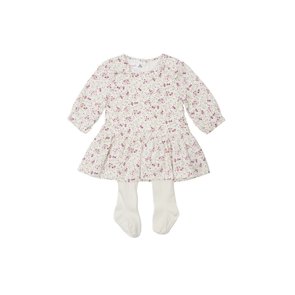 Прекрасний стильний та теплий комплект Babybol для дівчинки складається з сукні та колготок. Вельветова сукня в дрібну квіточку з довгим рукавом, на бавовняній підкладці застібається на спинці, на блискавку. Чудовим доповненням є однотонні колготи.