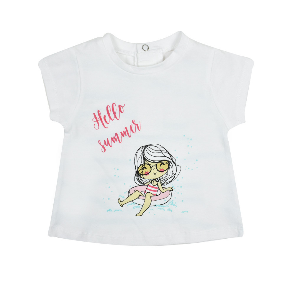Ви готові до приходу літа? Babybol пропонує чудовий трикотажний комплект для дівчинки, що складається з футболки та шортів. Комплект виготовлений із бавовни. Футболка декорована спереду малюнком на тему морського відпочинку, на спинці продовження у вигляді хвиль, а також є кнопки для легкого та швидкого одягання. Кнопки розміром до 3 років. М'які контрастні шорти до футболки на талії з гумкою, що дозволить регулювати її обсяг.