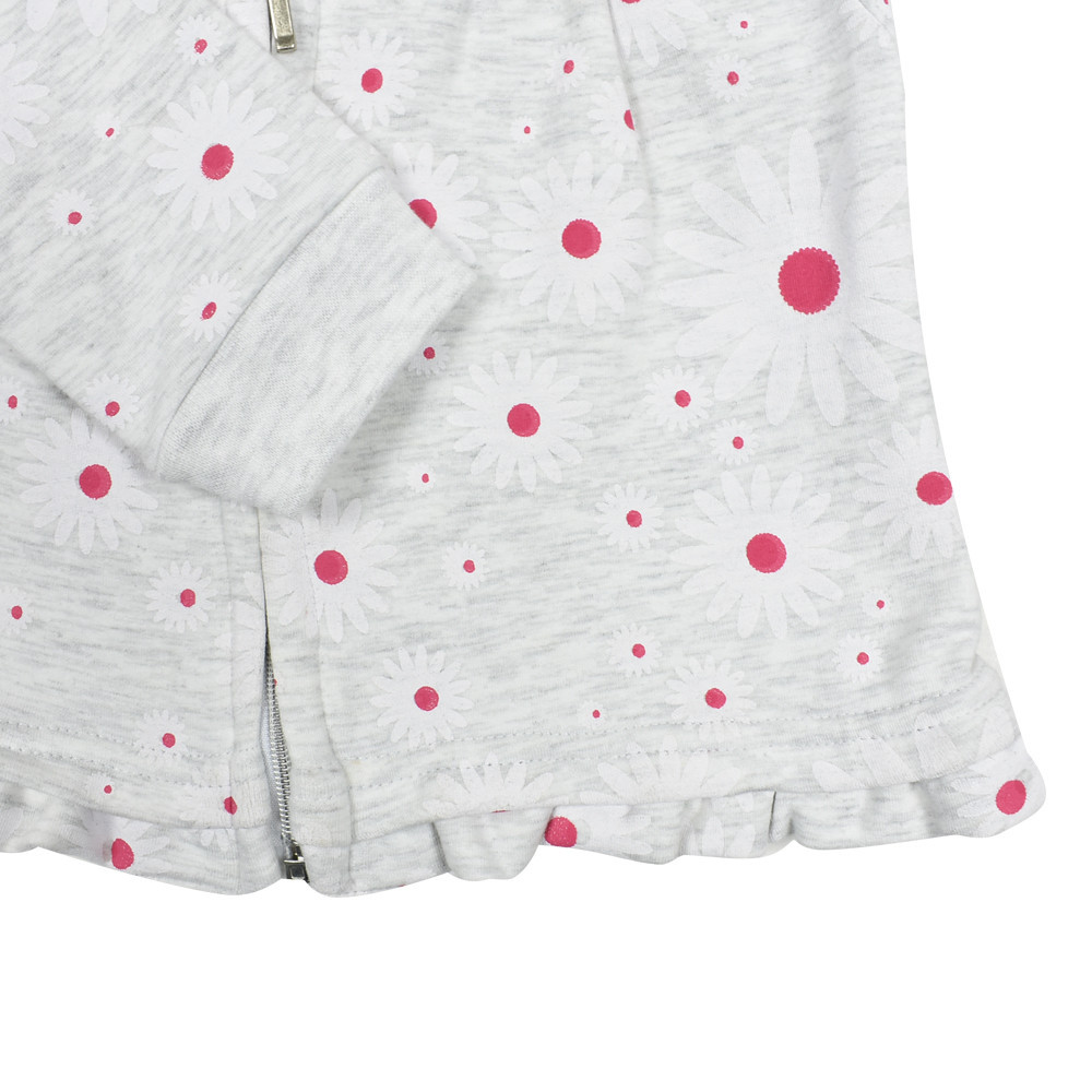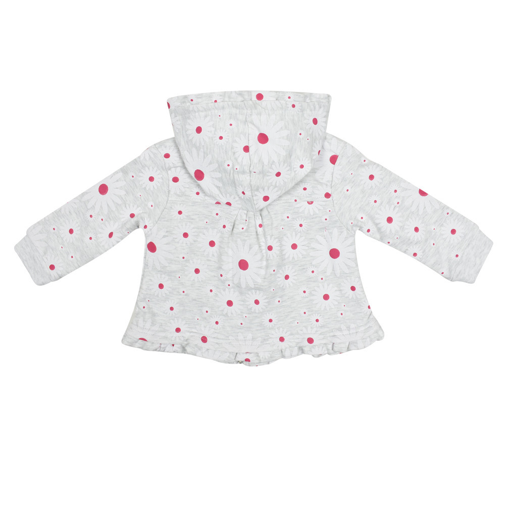 Зручний, модний, стильний трикотажний комплект Babybol стане незамінним варіантом для дівчинки для щоденних прогулянок. М'які трикотажні штани на манжеті з кишенями в бічних швах, на еластичному поясі з вшитою гумкою, затягується гумка тасьмою, що дозволяє регулювати обсяг талії. Толстовка з каптуром, з відрізною кокеткою, квітковий малюнок застібається спереду на блискавку. Знизу толстовка декорована невеликою оборкою, рукави на манжетах. Футболка прикрашена друкарським принтом, застібка кнопки ззаду лише для розмірів до 3 років.