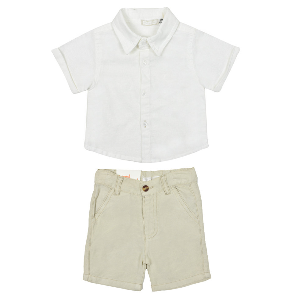 Стильний літній комплект Babybol, що складається з сорочки з коротким рукавом, і шорт неодмінно сподобається Вашій дитині. Сорочка з коміром модна та стильна, застібається на гудзики, низ злегка заокруглений. Прикрашає сорочку імітація кишені у рамці спереду. Шорти завжди потрібні у літньому гардеробі Вашої дитини. Модні та стильні, з передніми прорізними кишенями, ззаду кишені обманки із клапанами. Об'єм талії регулюється вшитою в поясі гумкою, яка затягується на внутрішні гудзики.