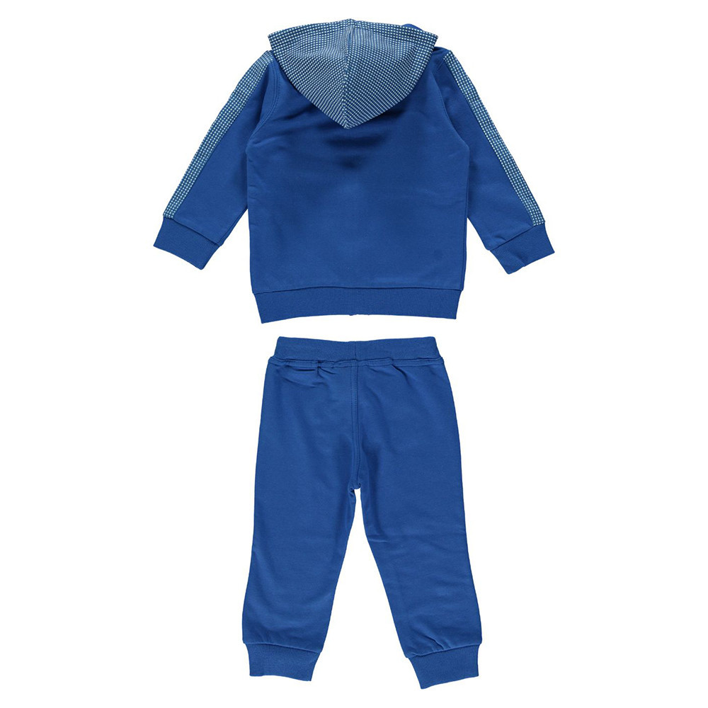 Цей трикотажний спортивний костюм ідеально підходить для прогулянок. Толстовка на блискавці із вставками на рукавах і каптуром у клітку декорована спереду принтом. Штани з кишенею кенгуру, еластичний трикотажний пояс і манжети спортивних штанів одного кольору. Талія регульована вшитим у поясі контрастним шнуром.