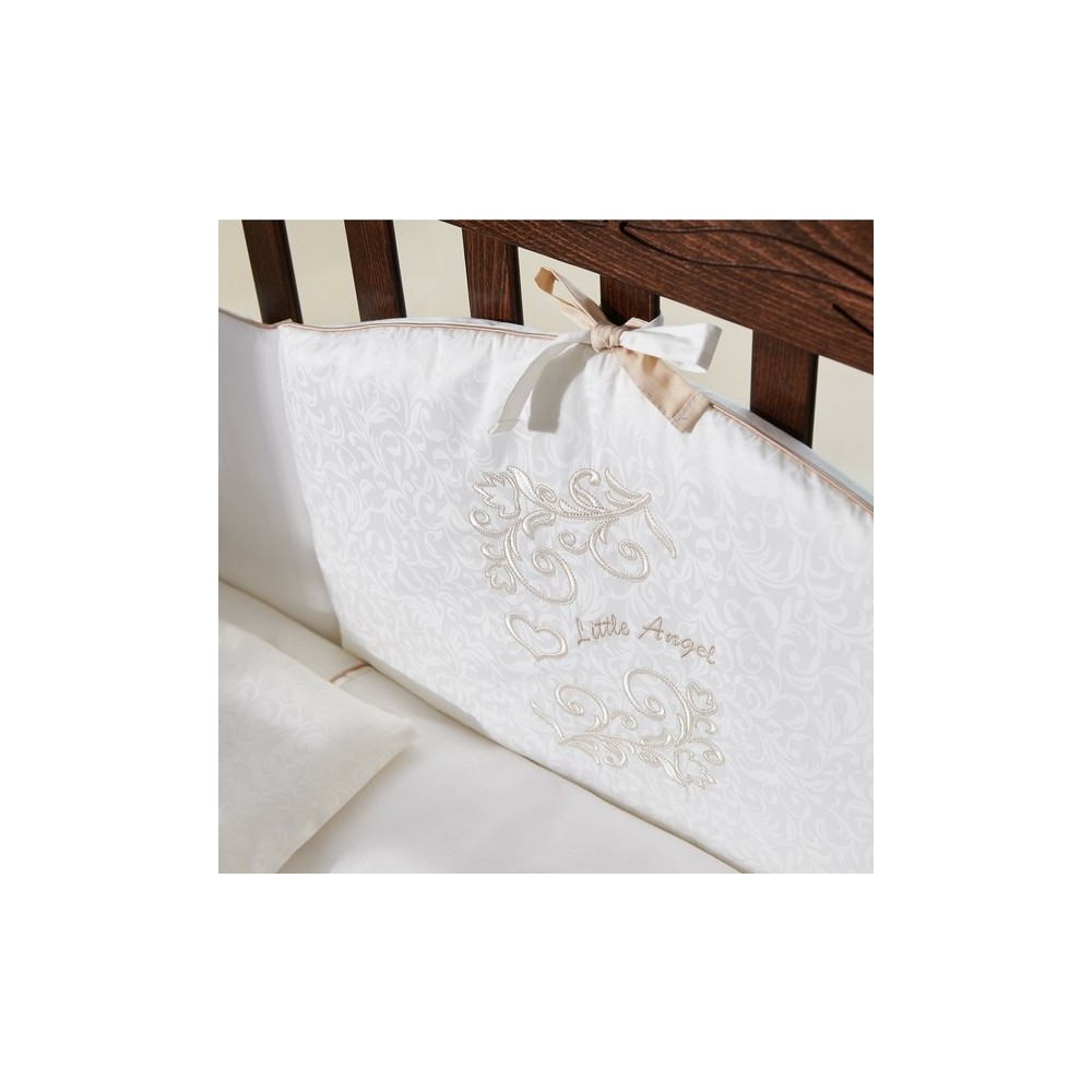 У комплект ліжку входить: - Захист на всю ліжечко на блискавки з 6 частин 60 * 38 см. - Ковдра 100 * 130 см. - Підодіяльник 100 * 130 см. - Подушечка 35 * 45 см. - Наволочка 35 * 45 см. - Простирадло на гумці (для матраца 120 * 60 см) .властивості: