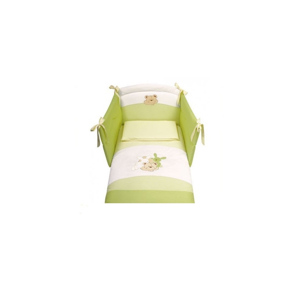 Комплект дитячої постелі складається з 5-ти предметів підходить для будь-яких дитячих ліжечок. Комплект виготовлений італійської ТМ "MaryBaby" з високоякісних і безпечних для дитячого здоров'я текстильних матеріалів. На дотик неймовірно м'який і малюкам буде комфортно і спати на ньому. Зовні дуже гарний, оздоблений аплікацією і декором. Крім постільного комплекту в набір входить ковдрочку і м'яка захист на бортики ліжечка з внутрішньої прошарком. Захист кріпиться на бильця ліжечка за допомогою завязочек за типом букви П, вона коротка і повністю не закриває бічні стінки ліжечка.