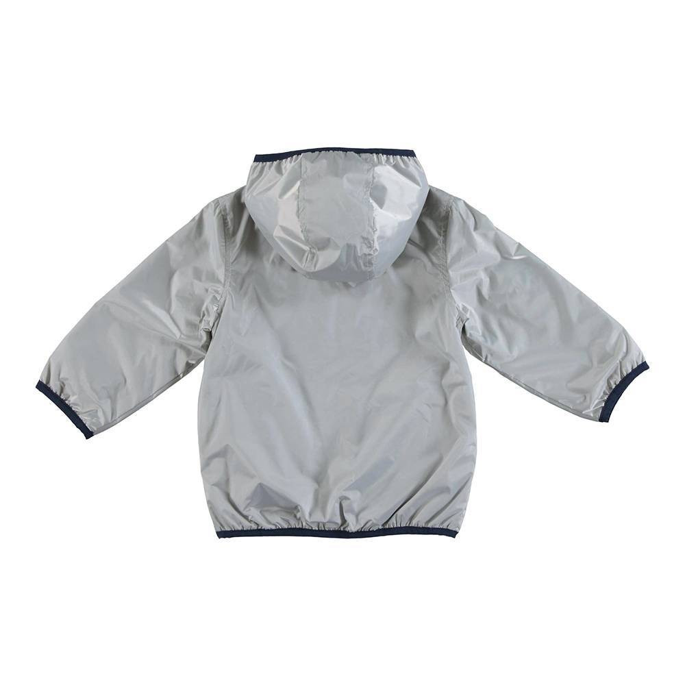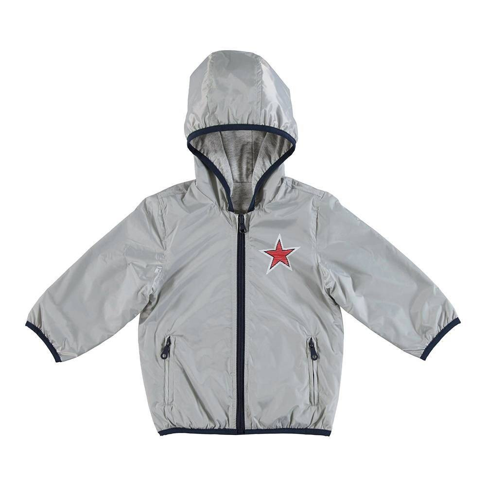 Двостороння куртка іDO з каптуром зручна та практична. Зовнішня частина виконана з тканини, що відбиває з зіркою, надрукованої збоку, бічні кишені на блискавці. Підкладка прикрашена ралійним малюнком. Окантовка виконана контрастною еластичною стрічкою, що застібається на блискавку.