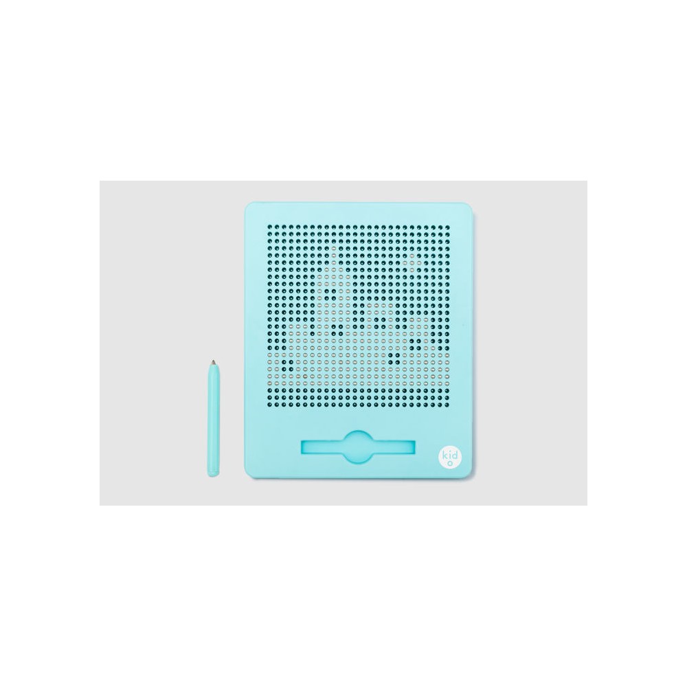 Малювати на цій дошці треба магнітним олівцем, і не простими сірими лініями, а металевими кульками! Саме тому поверхня дошки вся вкрита дірочками — у них будуть слідом за олівцем підніматися кульки, створюючи малюнок.