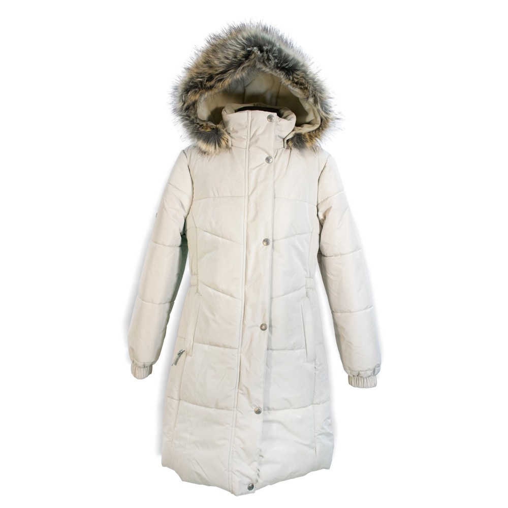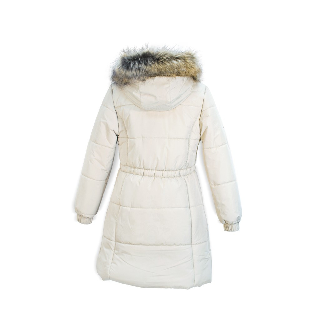 - Пальто: приталений силует, каптур знімний зі штучним хутром.