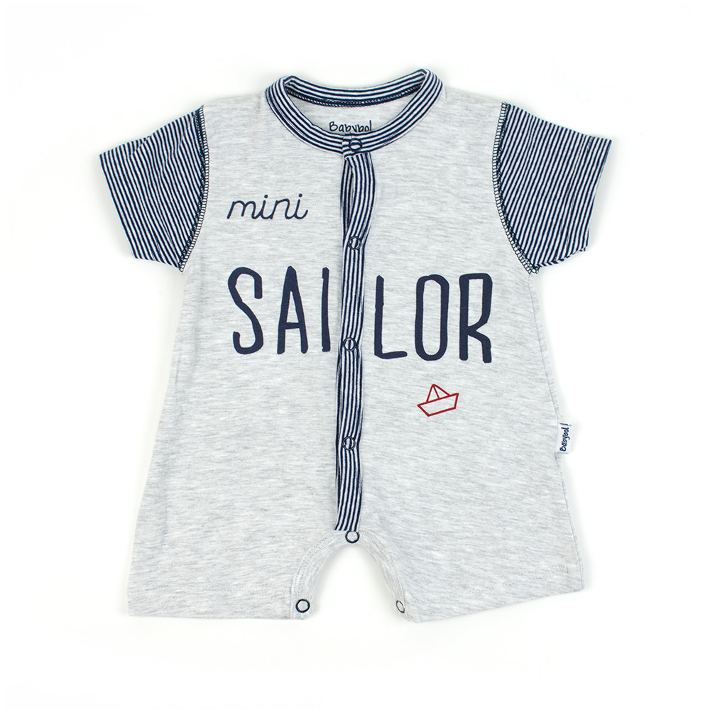 Дуже зручний одяг для спекотного літнього дня - м'який пісочник Babybol для новонародженого хлопчика виконаний з натуральної бавовни. Сірий меланж зі смугастими рукавами, по центру переданий дитячий малюнок на морську тематику. Застібається спереду на кнопки, є кнопки між ніжками для зручності зміни підгузки. Не обмежує рухів дитини, в ньому не жарко і зручно. Відмінний вибір для прогулянок, для пісочниці, пляжу та навіть святкових заходів.