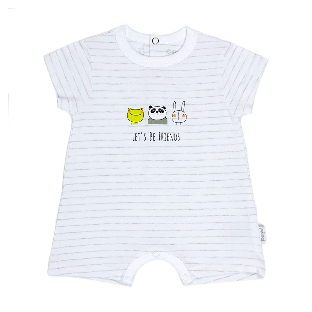 Дуже зручний одяг для спекотного літнього дня - м'який пісочник Babybol з натуральної, дихальної бавовни, смугастий малюнок по центру переда дитячий малюнок звірят. Кнопки між ніжками для зручності зміни підгузка. Застібається кнопками на спинці. Не обмежує рухів дитини, в ньому не жарко і зручно. Відмінний вибір для прогулянок, для пісочниці, пляжу та навіть святкових заходів.
