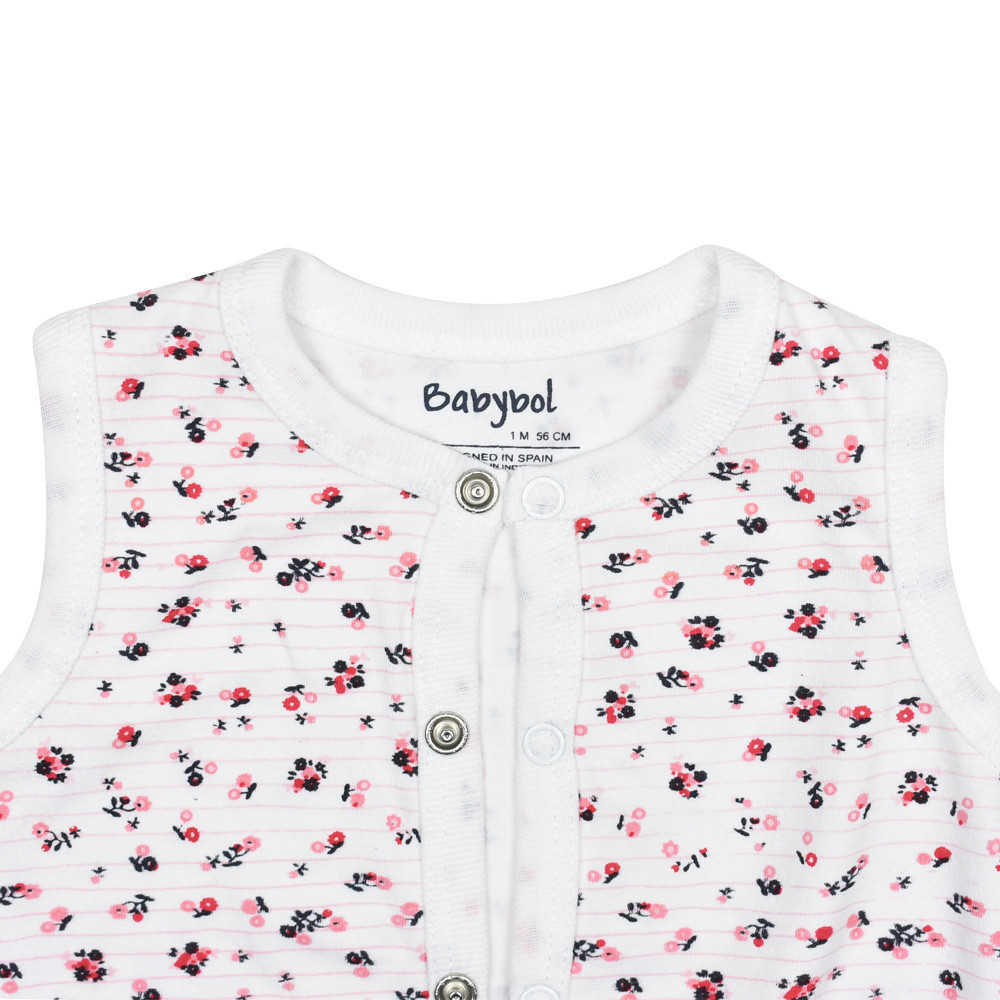 Найзручніший одяг для спекотного літнього дня Babybol - м'який пісочник-майка з натуральної, що дихає бавовни. Вільний крій, не обмежує рухів дитини, в ньому не жарко і зручно. Квітковий принт по всьому полю, а також однотонна трикотажна окантовка навколо горловини та по всій довжині та окату рукава. Дуже акуратні шви. Застібається спереду на кнопки є кнопки між ніжками для зручності зміни підгузки. Чудовий вибір для прогулянок, для пісочниці.