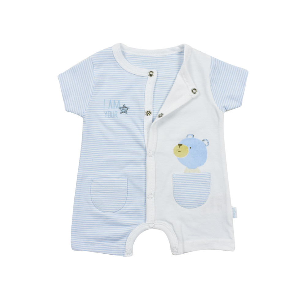 Найзручніша одежинка для спекотного літнього дня - м'який пісочник Babybol з натуральної, дихаючої бавовни. Вільний крій, не обмежує рухів дитини, в ньому не жарко і зручно. Половина переду і спинка смугаста. Окрасою служать накладні кишені і принт ведмедика, а також однотонна трикотажна окантовка навколо горловини і по всій довжині. Дуже акуратні шви. Застібається спереду на кнопки є кнопки між ніжками для зручності зміни підгузника. Відмінний вибір для прогулянок, для пісочниці.