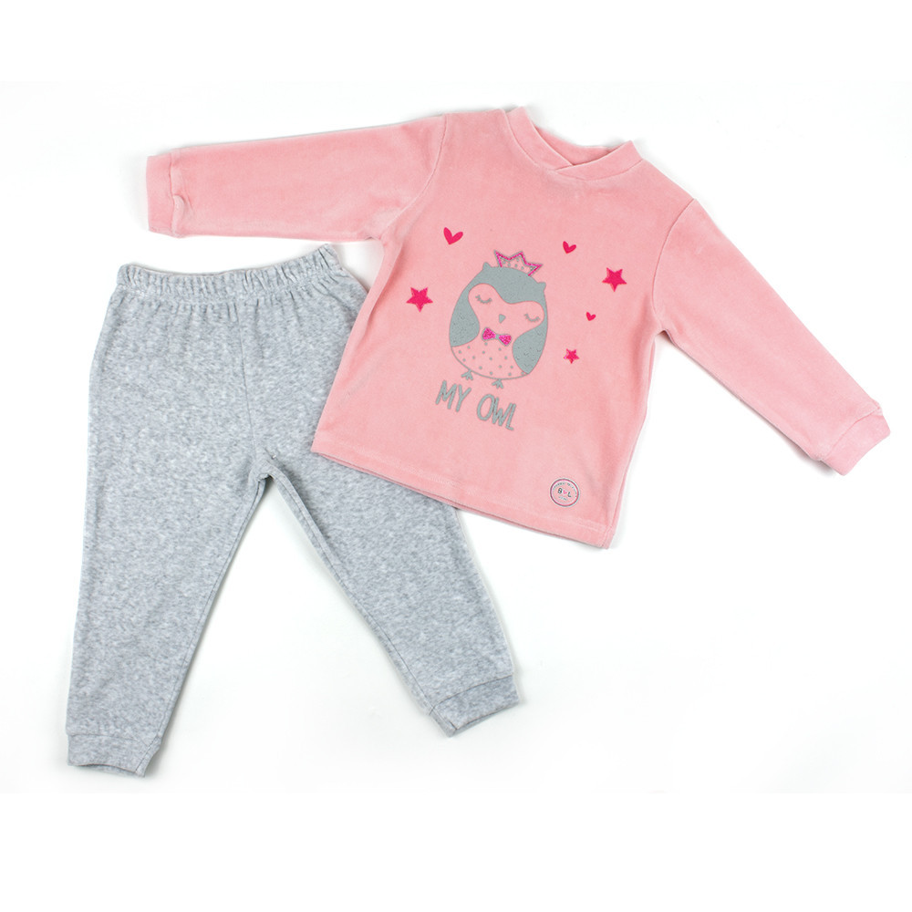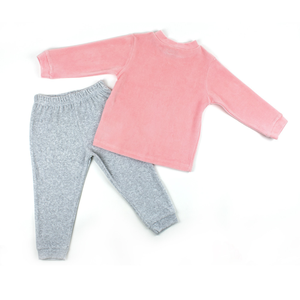 Красива велюрова піжама Babybol для дівчинки подарує тепло та затишок Вашій дитині. Тканина виробу дуже приємна до тіла. У цій велюровій піжамі Вашій дитині буде тепло та зручно. Матеріал дозволить "дихати" шкірі дитини, не перегріваючи її. Вдалий крій виробу не сковує рухів. Вільна горловина реглану, зручна м'яка гумка штанів не тисне на животик. Піжама декорована веселим дитячим малюнком, який створить Вашій дитині гарний настрій. Завдяки якості тканини, з якого виконано виріб, піжама збереже колір та форму після багаторазового прання.