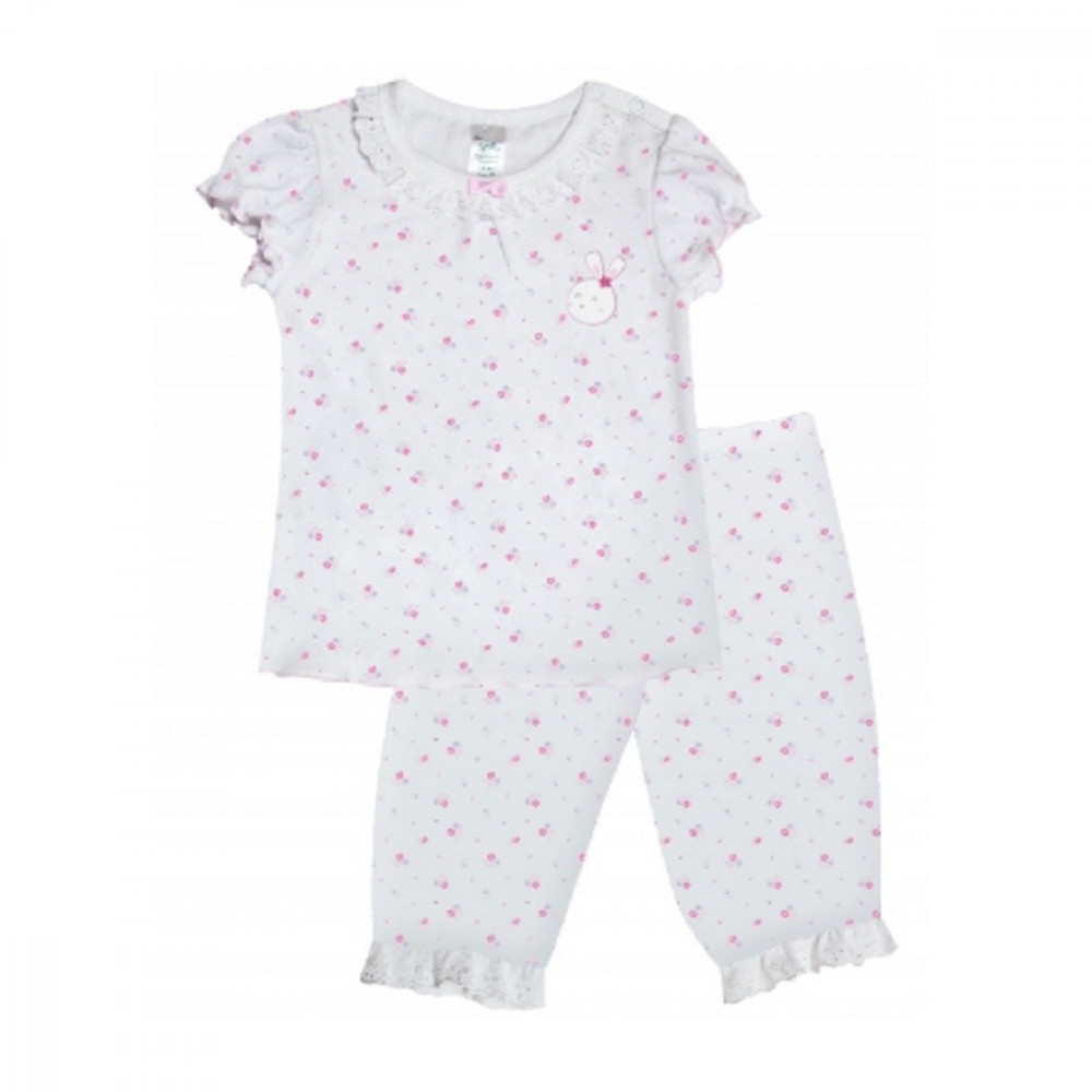 Шикарна літня трикотажна зі 100% бавовни (ажурна гумка) піжама для дівчинки складається з футболки та шортів. Тканина м'яка, приємна на дотик, добре пропускає повітря, не викликає алергічних реакцій. Футболку прикрашає мереживо навколо горловини та аплікація. Вашій малечі буде зручно і комфортно відпочивати в такому одязі.
