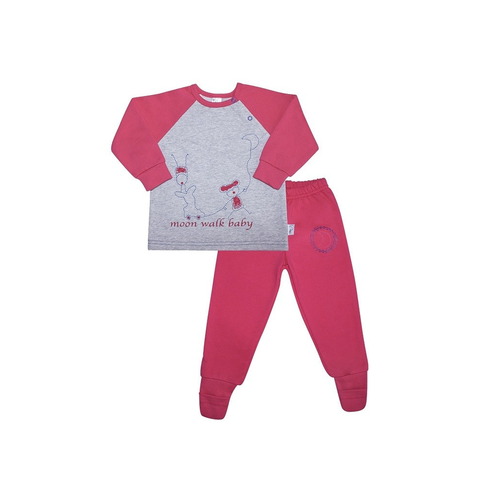 Тепла піжама для дівчинки симпатичного забарвлення з контрастними рукавами чудовий варіант для сну. Штанці з відворотами на ніжках, за допомогою яких можна закрити ступню під час сну. Застібка кнопочки по рукаву реглану спереду светра полегшить і прискорить одяг Вашого малюка.