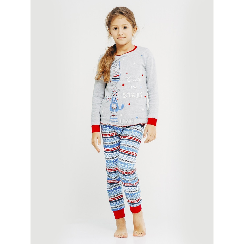 Піжама з довгим рукавом для дівчинки. Рукава і штанини на манжетах. Малюнки - світяться в темряві.