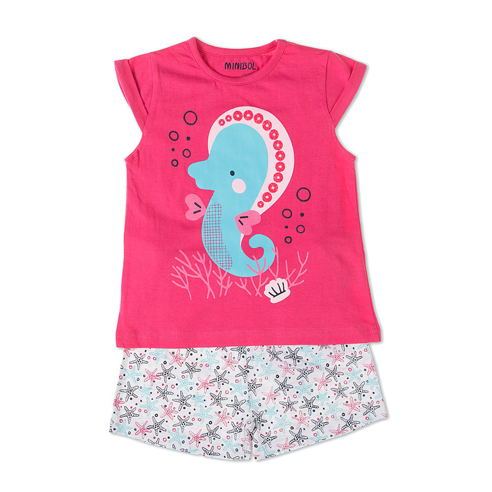 Колір: футболка - рожевий, шорти - сірий.
