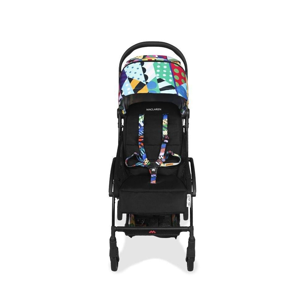 Зустрічайте яскраву новинку літа - Atom у колекції Jason Woodside - дуже незвичайна, стильна та модна модель. З такою коляскою Ви точно не залишитеся непоміченими, адже різноманітне поєднання кольорів і принтів приковує погляд. Maclaren Atom отримала кольорові ремені безпеки, яскраві вставки на кошику і дощовику, матрацик з чорно-білим принтом у комплекті. Образ доповнює елегантна чорна рама в поєднанні з фірмовими логотипами Maclaren і капюшон з розширенням в дусі колекції.