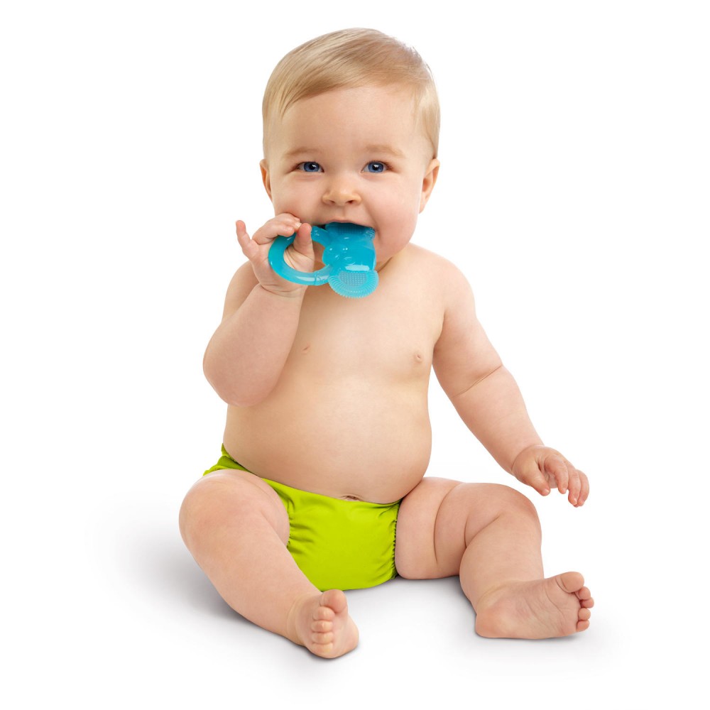 Прорізувач Kids II Слоненя — перший із серії прорізувачів First Bites, спеціально розроблених під керівництвом дитячого стоматолога для кожного конкретного етапу прорізування зубів. Щетинки та рельєфна поверхня ефективно масажують ніжні ясна та допомагають прорізуванню перших фронтальних зубків. Дуже легко та зручно тримати маленькими пальчиками.