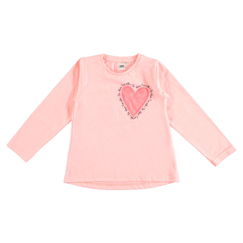 Романтичний трикотажний реглан з бавовняної тканини з круглою горловиною, нижня частина спинки закруглена та довша за перед. Окрасою переда служить рожеве серце обрамлене контуром.