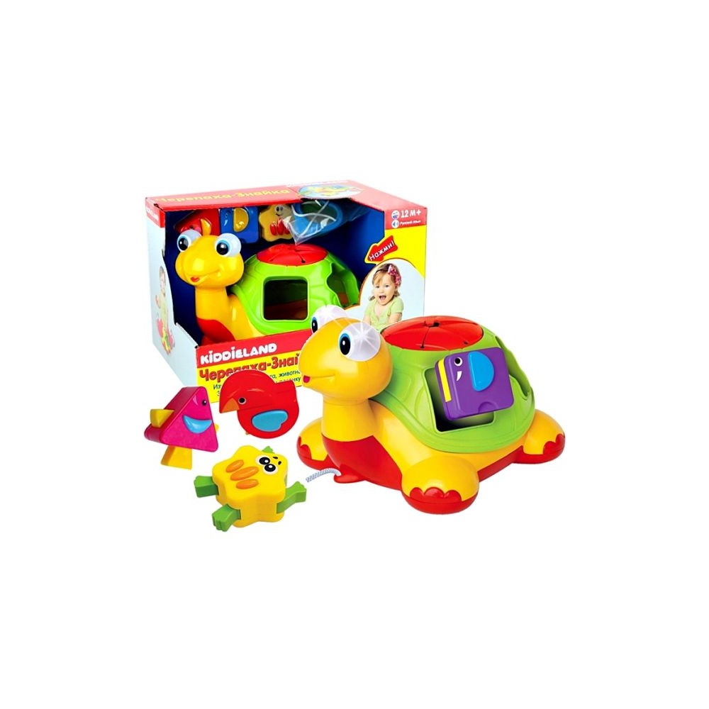 Забавна каталка-сортер «Черепаха-знайко» від Kiddieland вміє співати пісеньки, розповідати віршики, і мигати різними кольорами. Для продуктивного і веселого проведення часу потрібно тільки дати дитині іграшку і 4 фігурки (поставляються в комплекті разом з сортером) - з іншим малюк розбереться самостійно, причому, з великим задоволенням!