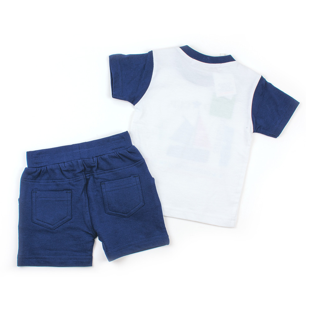 Чудовий трикотажний літній комплект Babybol для хлопчика складається з футболки та шортів. Комплект виготовлений із 100% бавовни. Футболка декорована спереду принтом на морську тематику, горловина та рукави одного кольору із шортами. Застібка кнопки на плечі, полегшать та прискорять процес одягання Вашого малюка. Легкі однотонні шорти з прорізними кишенями спереду та накладними ззаду. Пояс на гумці дозволить регулювати обсяг талії. Яскравий трикотажний комплект не залишиться без Вашої уваги.