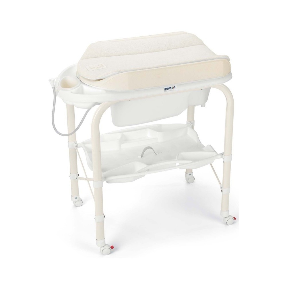 Пеленальний столик CAM Cambio C234 Solo Per Te Кремовий - сучасний пеленальний стіл для дітей з народження до 12 місяців з яскравим оригінальним дизайном. Виготовлений з якісних матеріалів. Столик обладнаний ванночкою зі зливом, вона може бути використана в 2-х позиціях (для малюків 0-6 міс. І від 6 до 12 міс.). Для зручного переміщення столик має коліщатка, два з яких - з фіксаторами. Легко і компактно складається, завдяки чому його зручно зберігати. Столик не має гострих кутів і деталей.