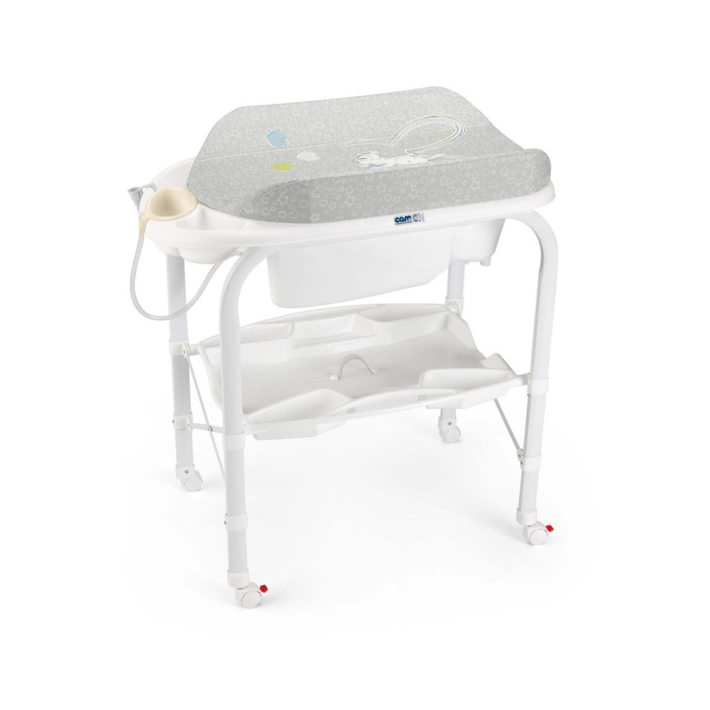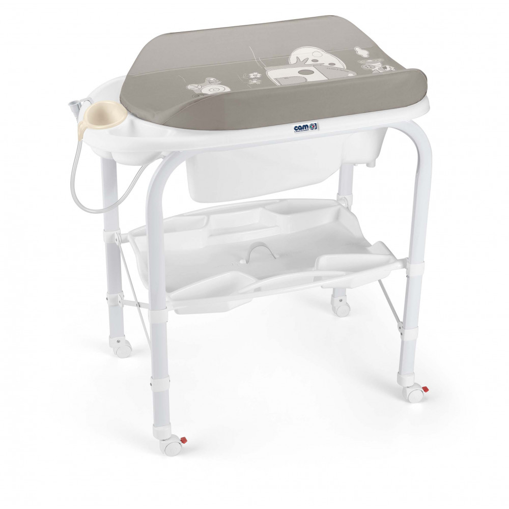 Пеленальний столик з ванночкою Cam Cambio - сучасне і зручне придбання, яке стане необхідним для вас з моменту народження малюка. Пеленатор і ванночка встановлені на раму. Пеленатор має м'яку поверхню, а ванночка отвір для зливу води, поличку для ванних засобів і додатковий піддон для зберігання різних речей.