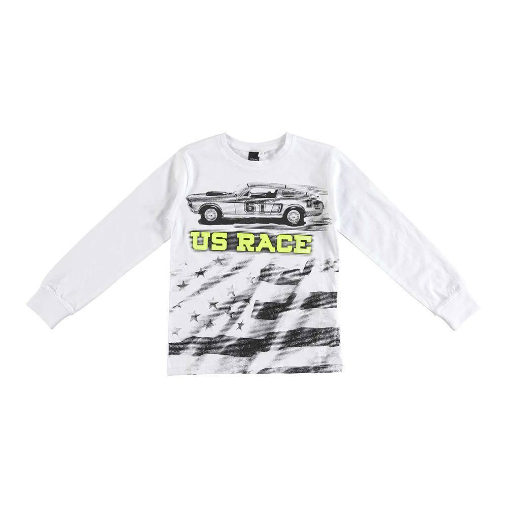 Трикотажний светр ідеально підходить для сміливих та спортивних хлопчиків. Виготовлений із 100% бавовни, кругла горловина, манжети на трикотажній резинці, для запобігання розтягуванню після прання. Головною особливістю цього светра є американська ралі-друк спереду.