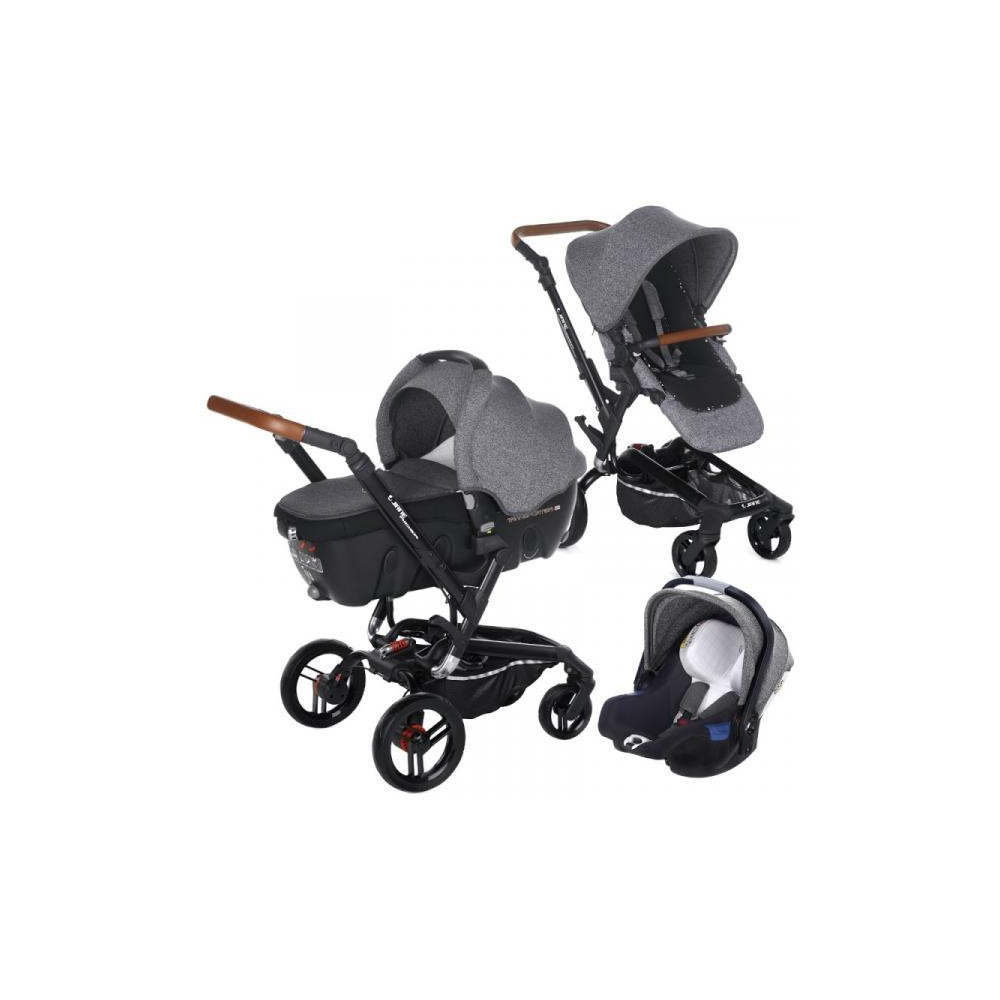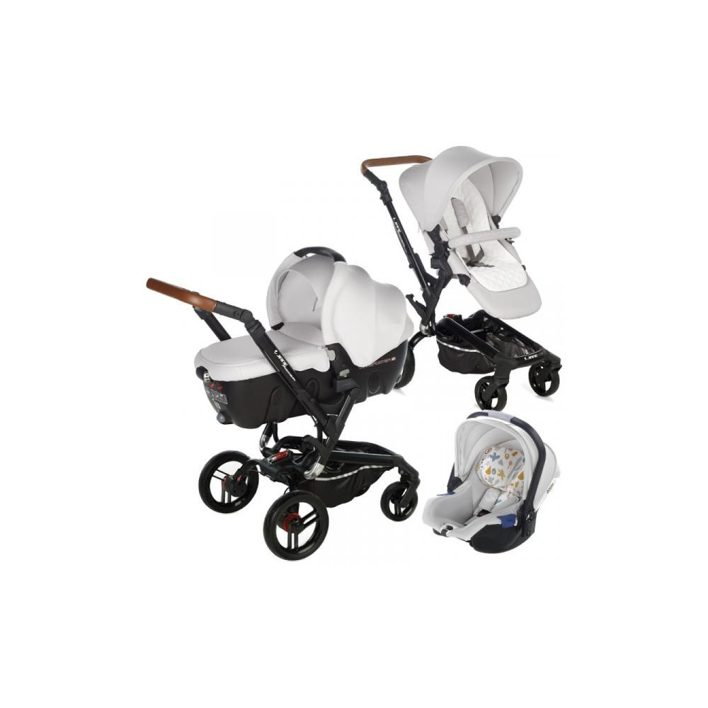 Універсальна коляска 3 в 1 Jane Rider Koos iSize Transporter 2-це сучасна модель модульної чотириколісного коляски зі спортивним дизайном. Вона включає в себе люльку-переноску Transporter 2, реверсивний прогулянковий блок «кокон» і автокрісло Koos iSize групи 0. Дана модель обладнана запатентованою системою Pro-Fix, яка дає можливість швидко і надійно встановлювати на неї нові люльки і автокрісла Jane, діючи при цьому всього лише однією рукою.