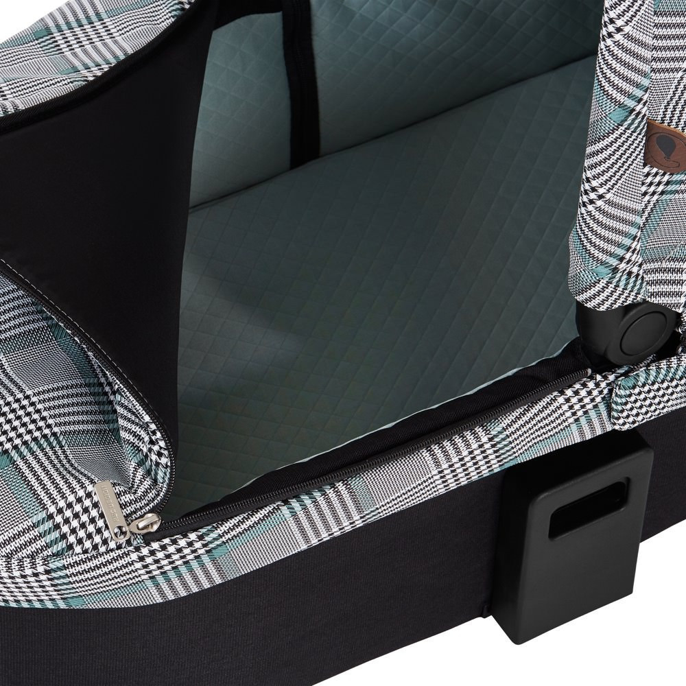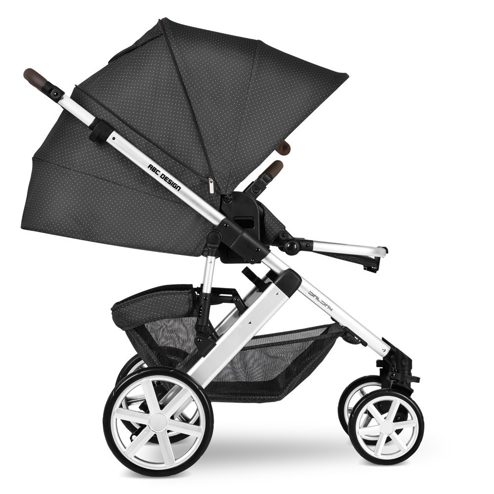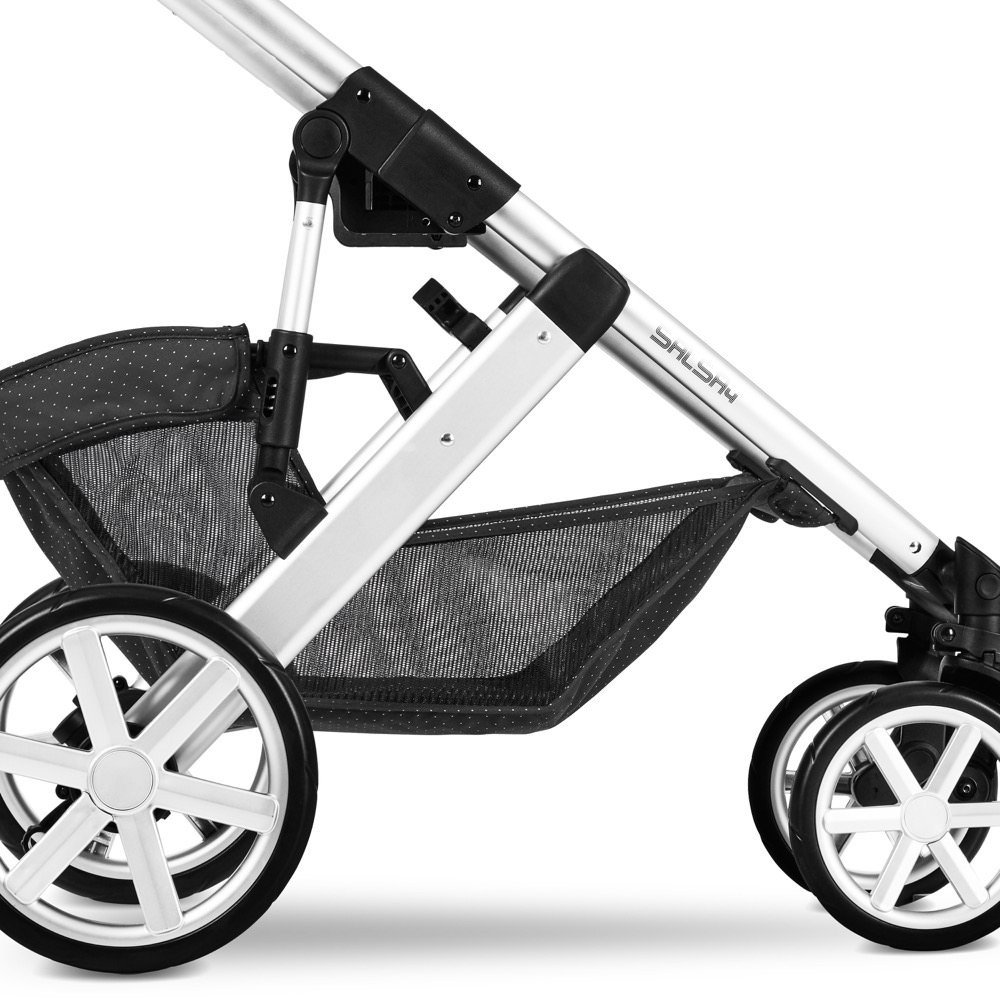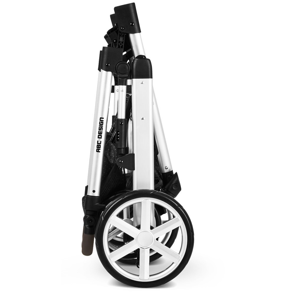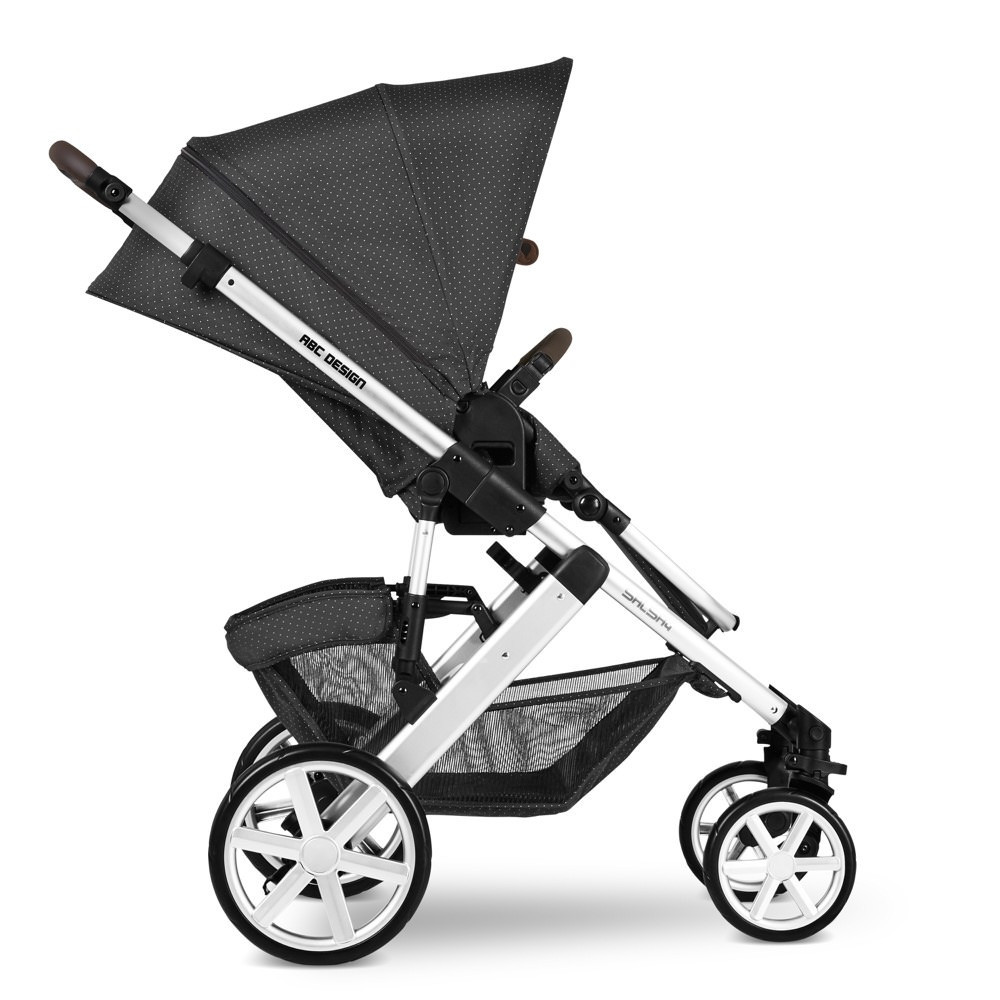 Легка і міцна рама з колесами на кулькових підшипниках забезпечує плавне пересування в будь-яких умовах. Фіксуються поворотні передні колеса гарантують високу маневреність. Завдяки піднятою задньої осі при управлінні коляскою ногам нічого не заважає. Кут нахилу спинки забезпечує максимально зручне положення дитини і підтримку хребта. Капюшон коляски доповнений оглядовим віконцем і сонцезахисним козирком.