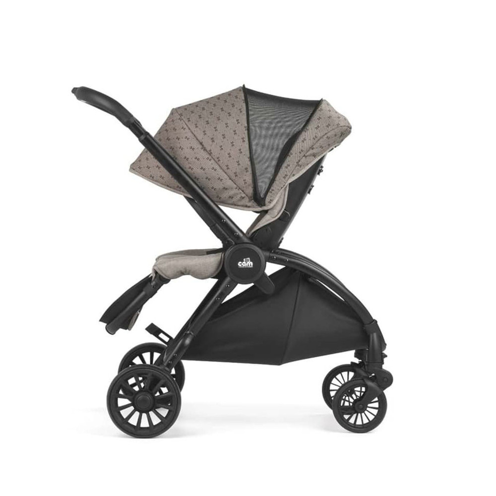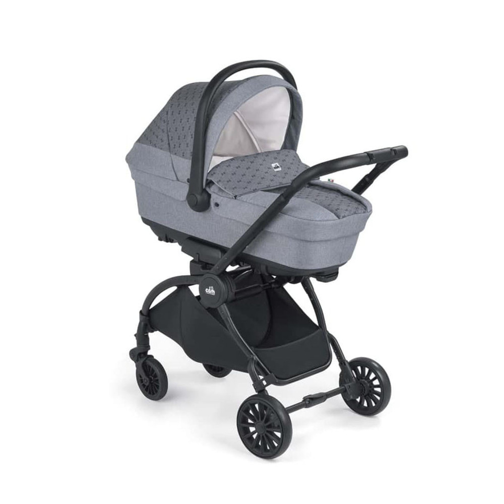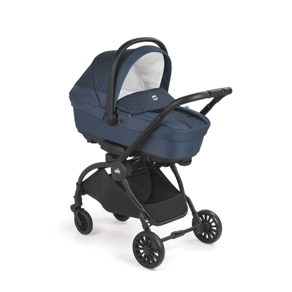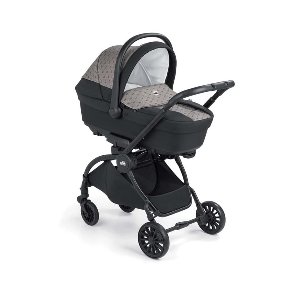 Коляска 3 в 1 Cam Vogue - ексклюзивна новинка від італійської компанії, повний модульний набір 3 в 1 на алюмінієвому шасі незвичайної вишуканої форми, що містить у собі також люльку для новонародженого, прогулянковий блок та автокрісло групи 0+. При його створенні враховано всі потреби дитини, починаючи від народження й до віку 3-4 років, тож купівля цього комплекту заздалегідь розв'яже проблему підбору транспортних засобів для малюка на кілька років уперед. Всепогодна містка люлька для немовляти підійде для прогулянок у будь-яку пору року та за будь-якої погоди, прогулянковий блок з великим капюшоном і демісезонною накидкою на ніжки - для дитини старшого віку, а зручне, виконане за всіма європейськими стандартами надійності автокрісло разом із шасі, складеним компактною книжкою, можна безпечно переміщати в автомобілі разом із маленьким пасажиром.<На місці шасі розкладається, на нього встановлюється автолюлька і, будь ласка, ще один повноцінний транспортний засіб для дитини готовий. Також в комплект входить сумка для мами, а сам набір виконаний в практичних або яскравих кольорах на вибір, і буде незмінно привертати погляди на вулиці, завдяки своєму футуристичному дизайну.