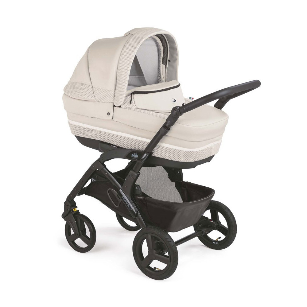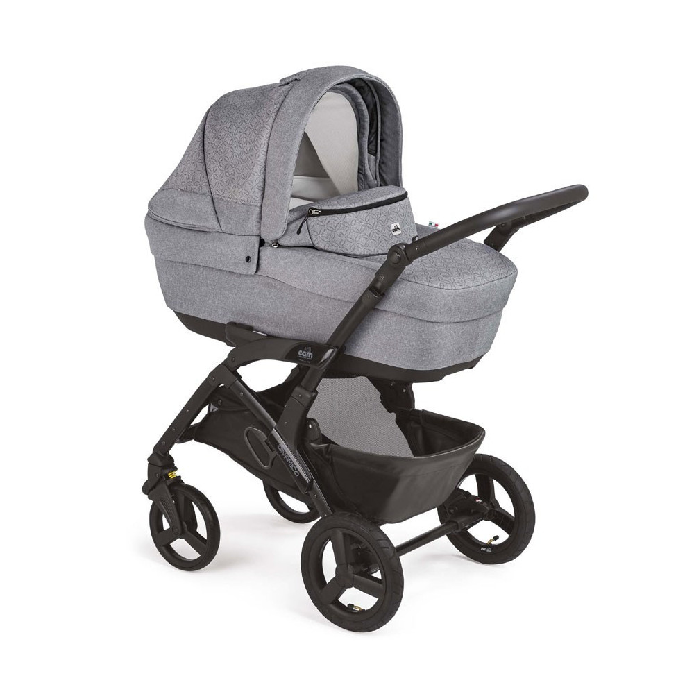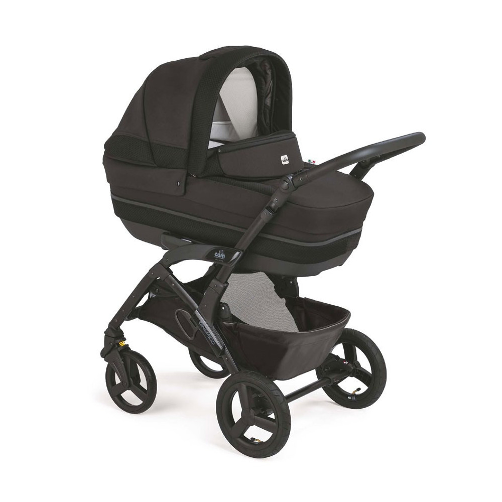 У комплект входять: шасі, автолюлька, автокрісло групи 0+ (0-13кг), прогулянковий блок, сумка на ремені, поясна сумка, накидка на люльку, чохол для ніжок в прогулянку, корзина речей.